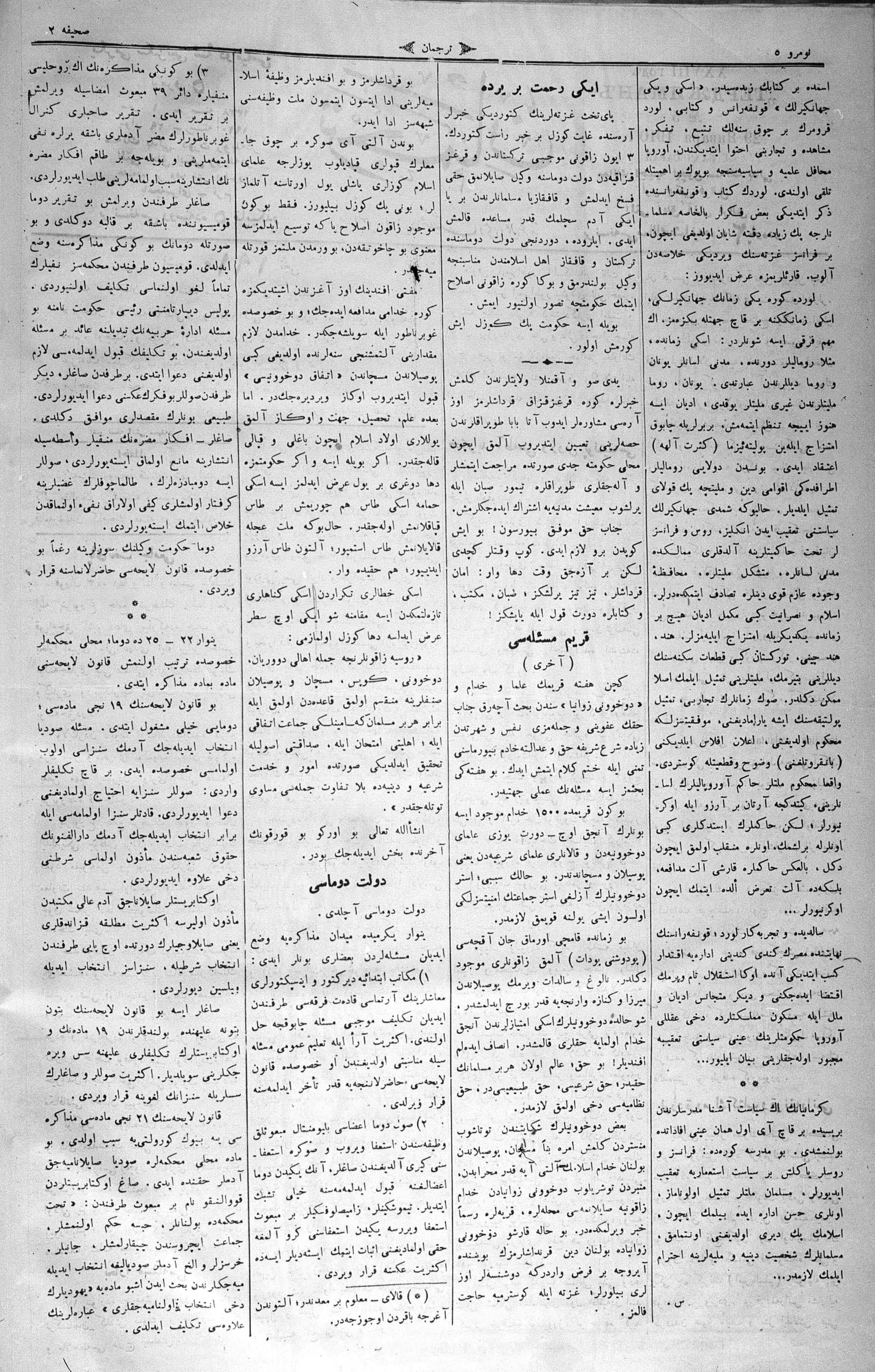 Turkish-Russian newspaper published in Crimea by İsmail Gaspıralı.