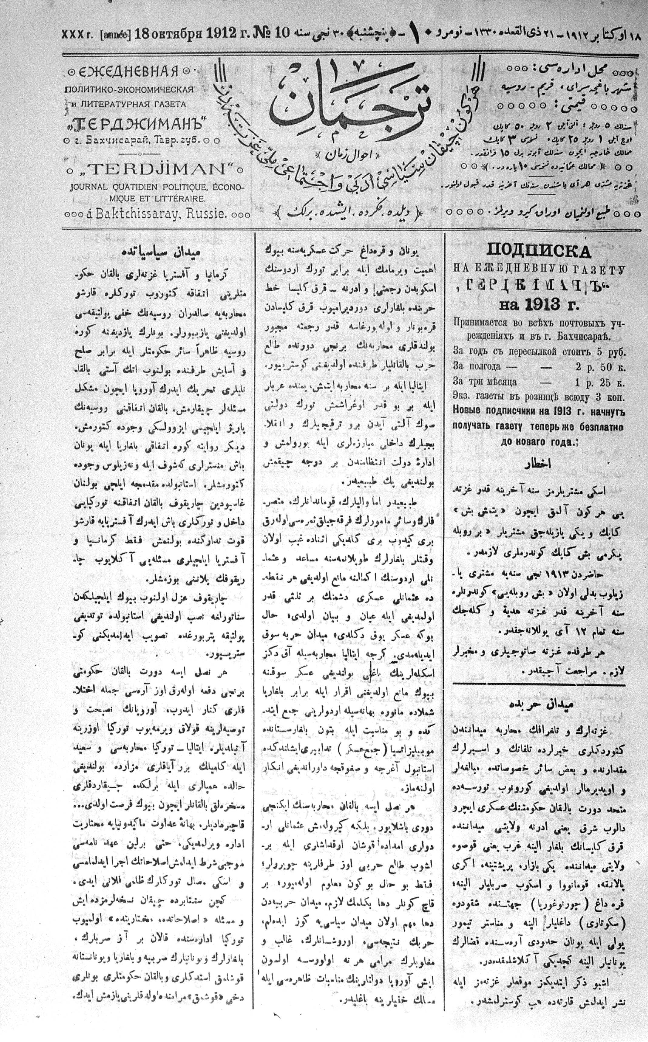 Tercüman, 18 October 1912 Year 30 No 10