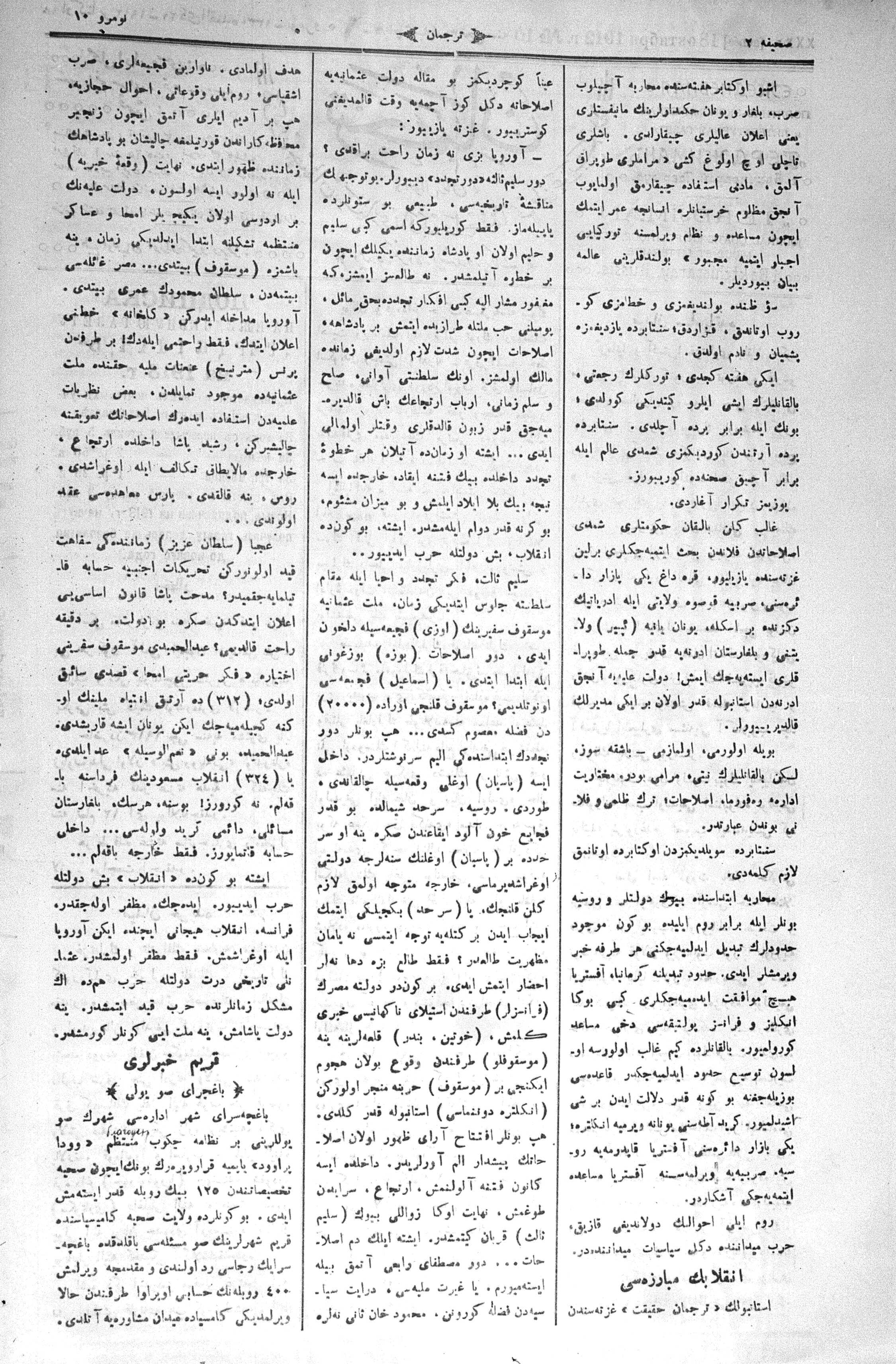 The name of the newspaper changed to Tercüman-ı Ahval-i Zaman in 1905. In 1909, it started to be published under its first name, Tercüman.