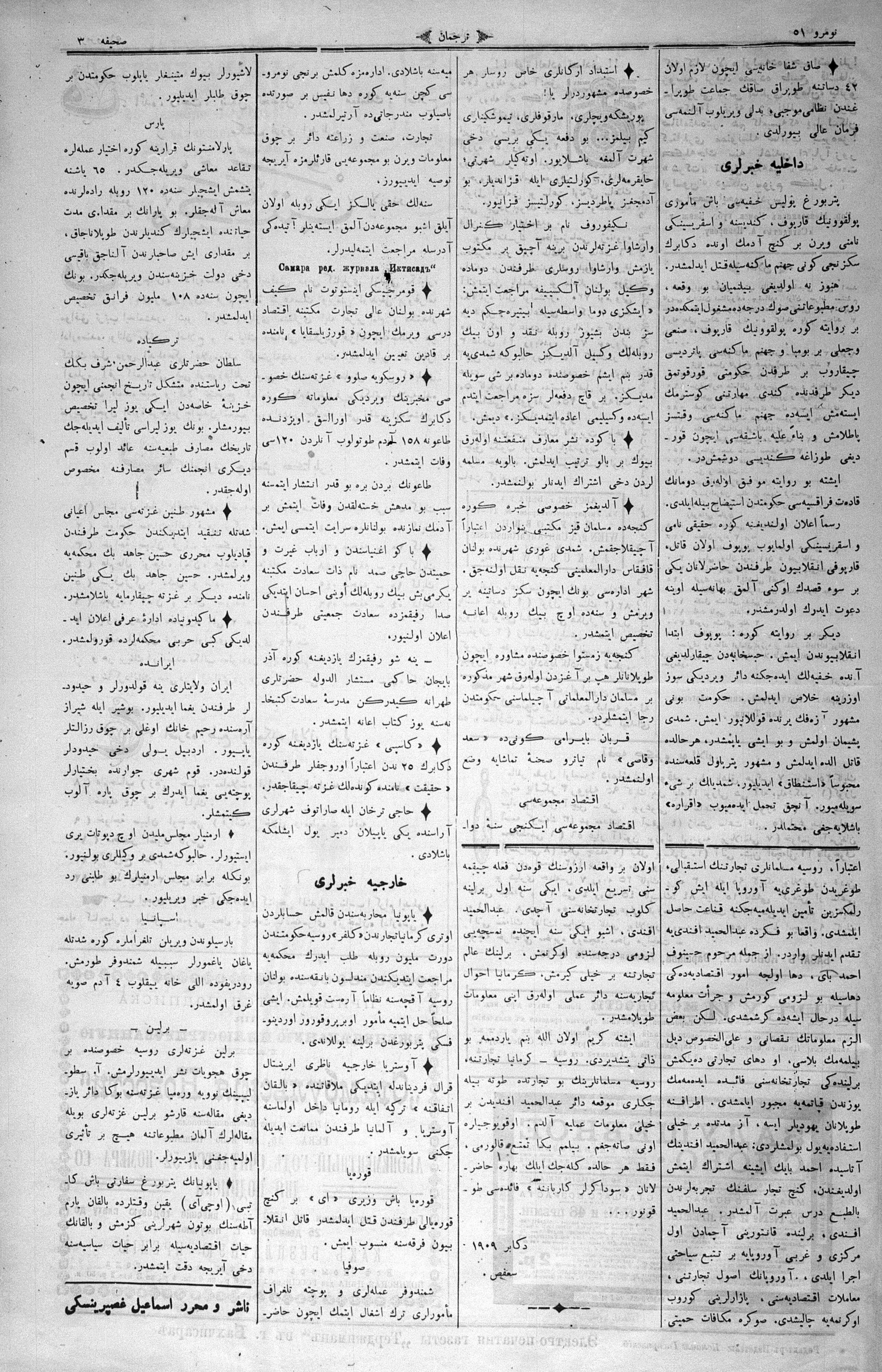 Tercüman, 18 December 1909 Year 27 No 51