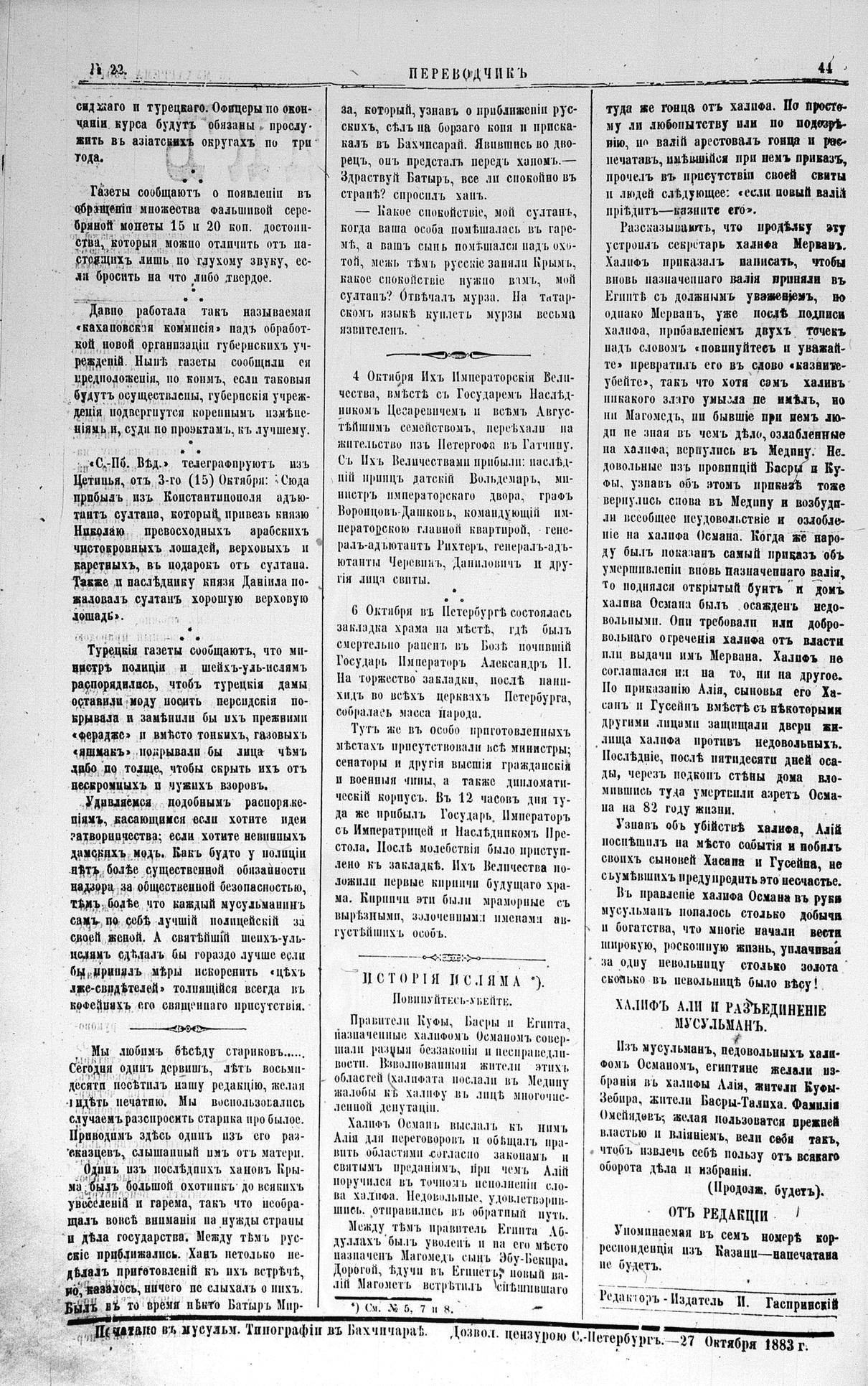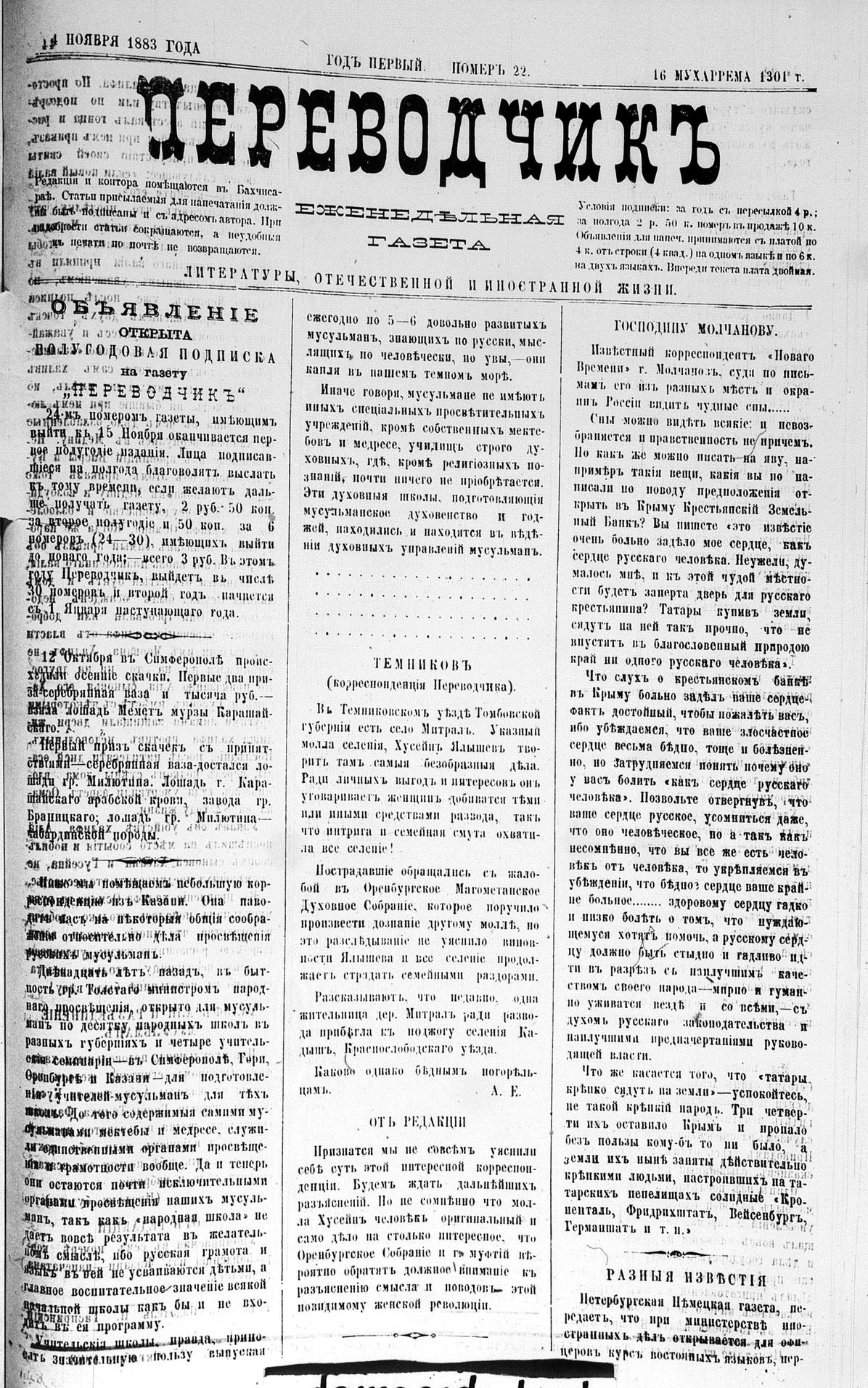 Tercüman, 04 November 1883 Year 1 No 22