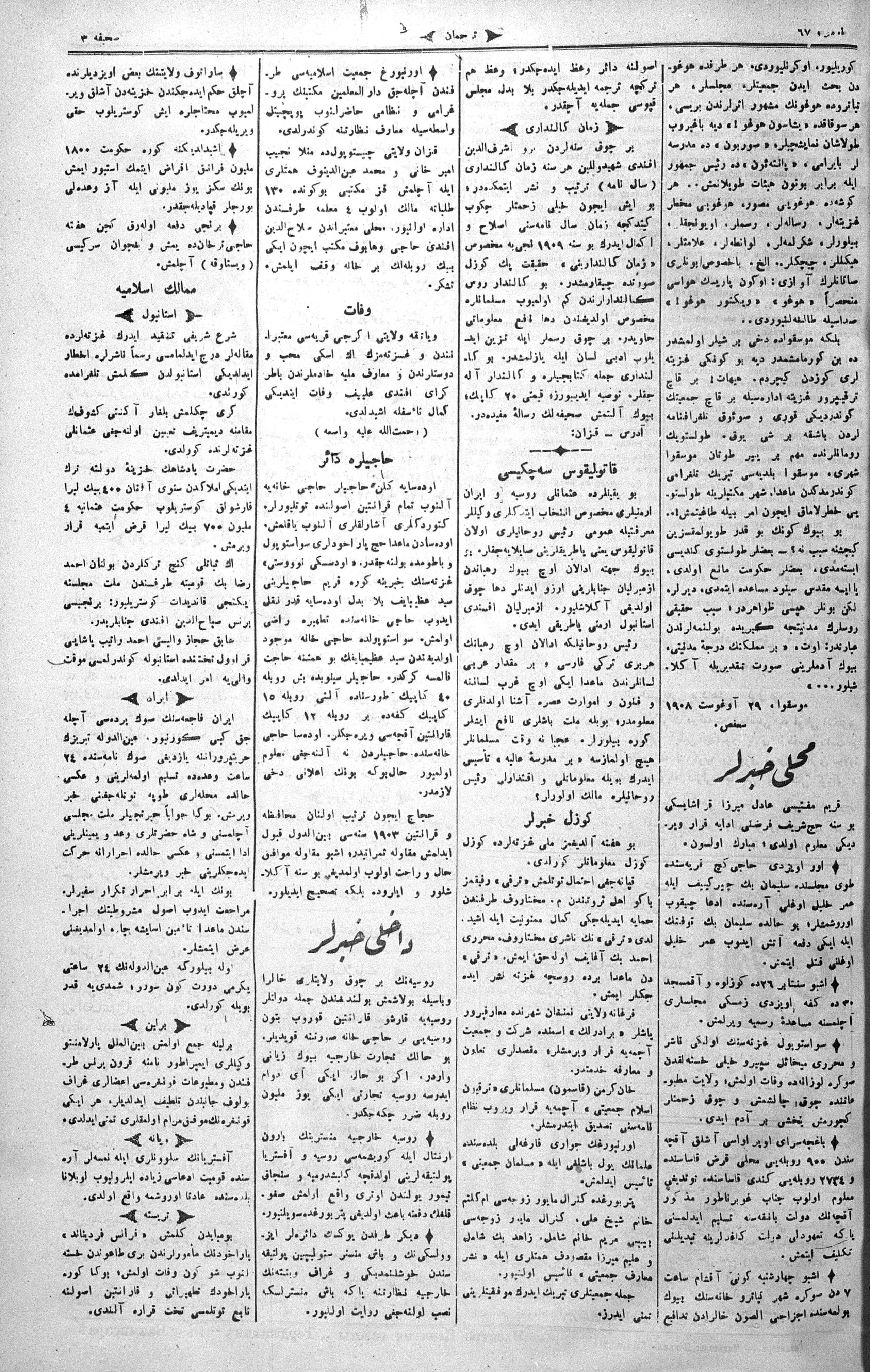 Tercüman, 14 September 1908 Year 26 No 67