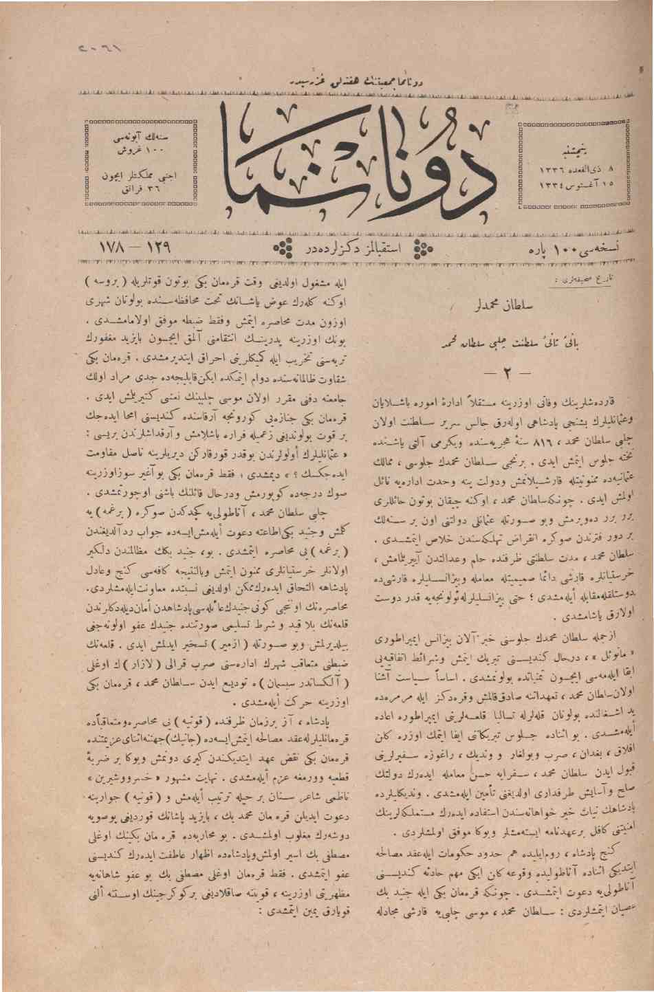 The name of the periodical was published under the following titles in different periods: Donanma: Donanma Cemiyetinin haftalık gazetesi; Donanma: istikbal denizlerdedir; Donanma: şimdilik ayda bir defa neşrolunur; Donanma: ayda bir defa neşr olunur, musavver, ahlaki, edebi, tarihi, fenni mecmuadır.