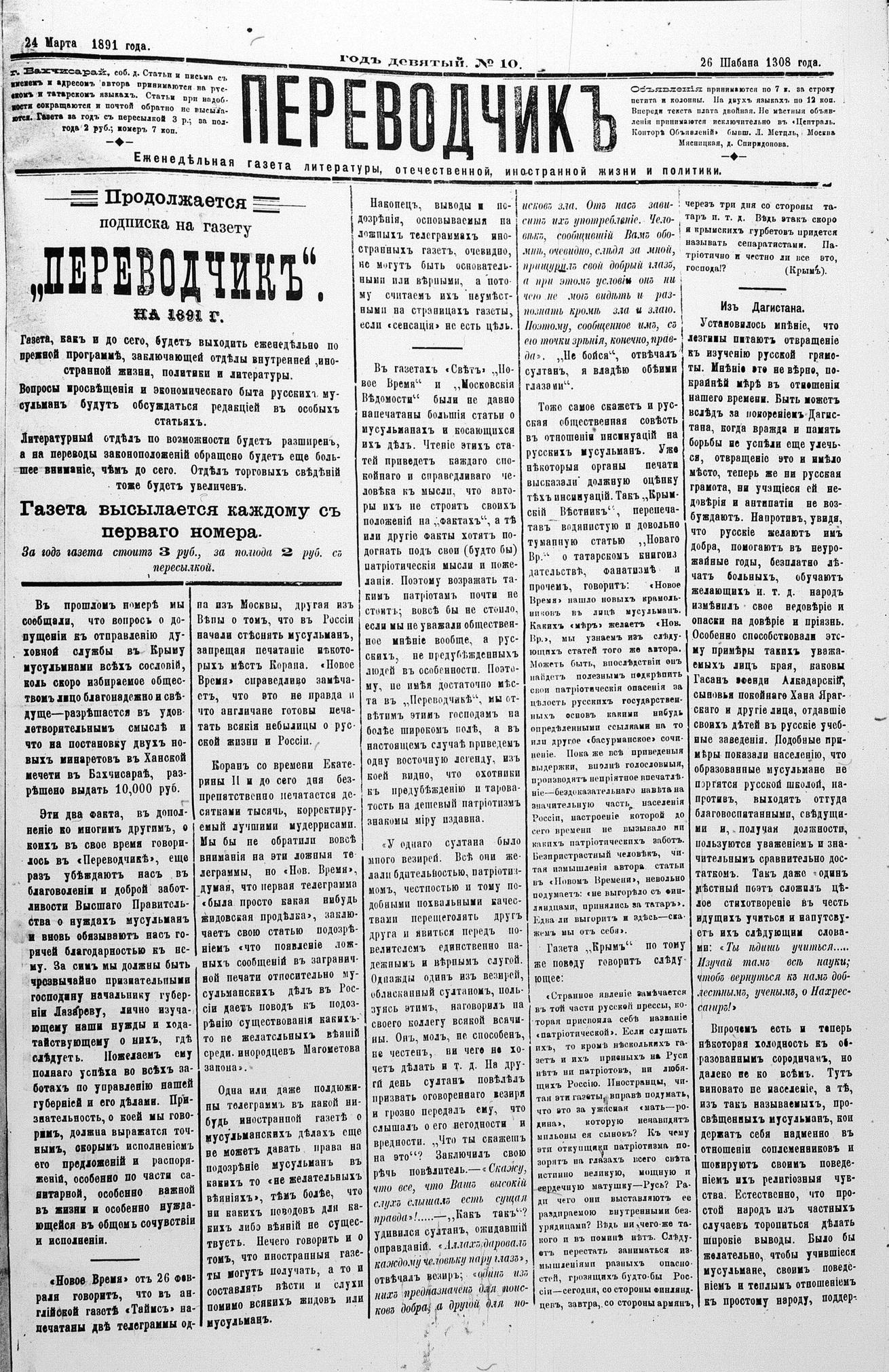 Turkish-Russian newspaper published in Crimea by İsmail Gaspıralı.