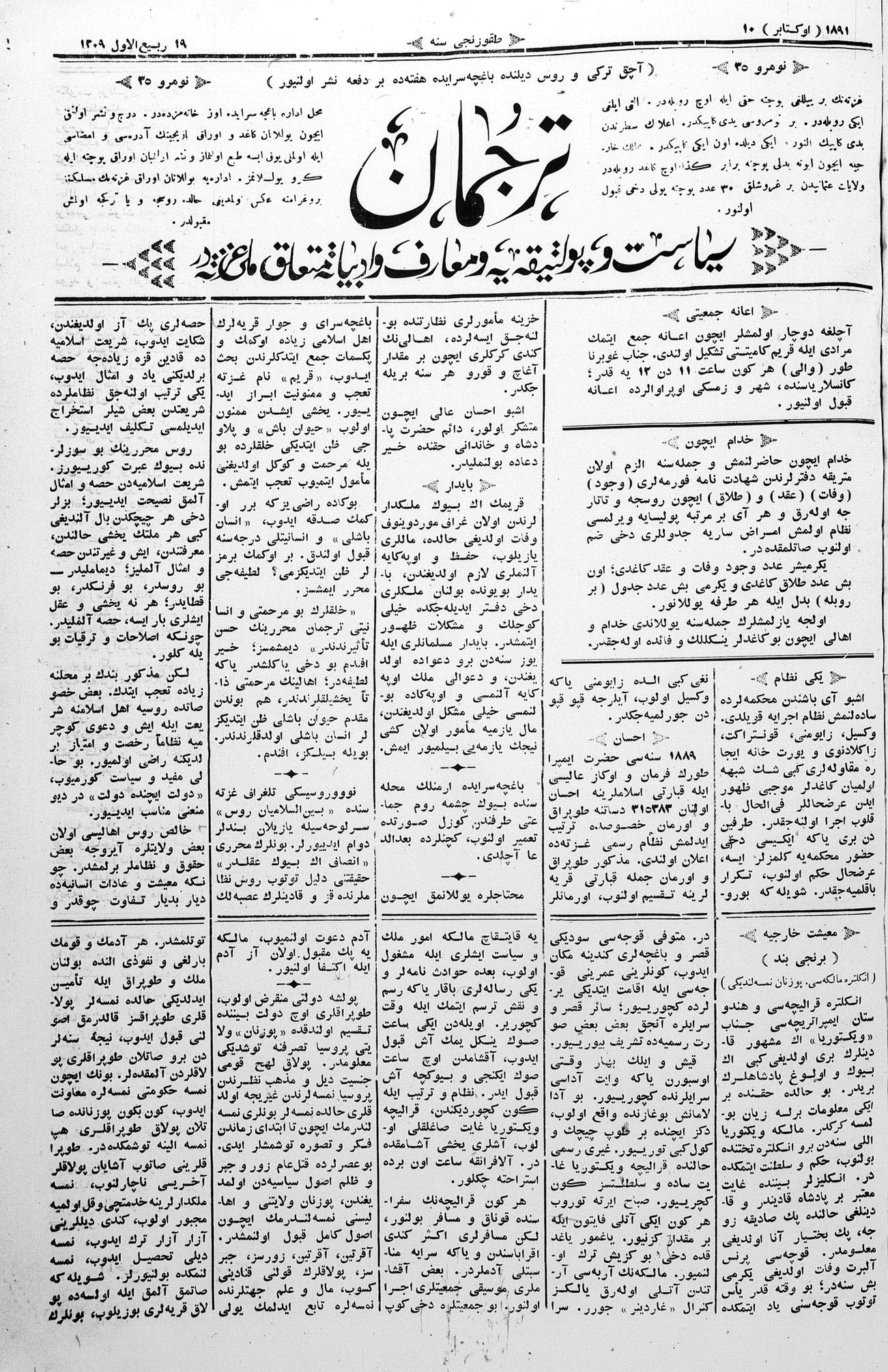 Tercüman, 10 October 1891 Year 9 No 35