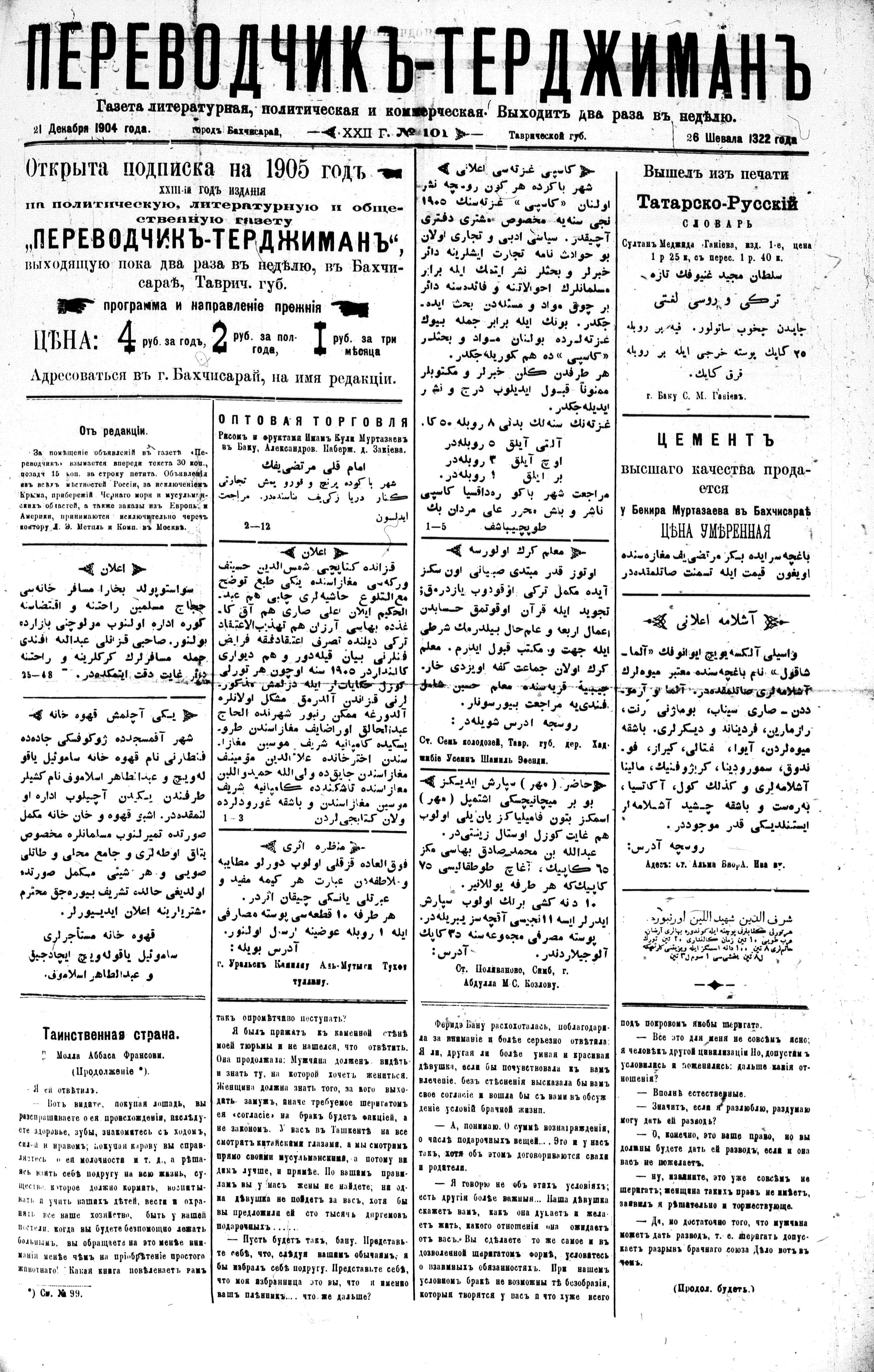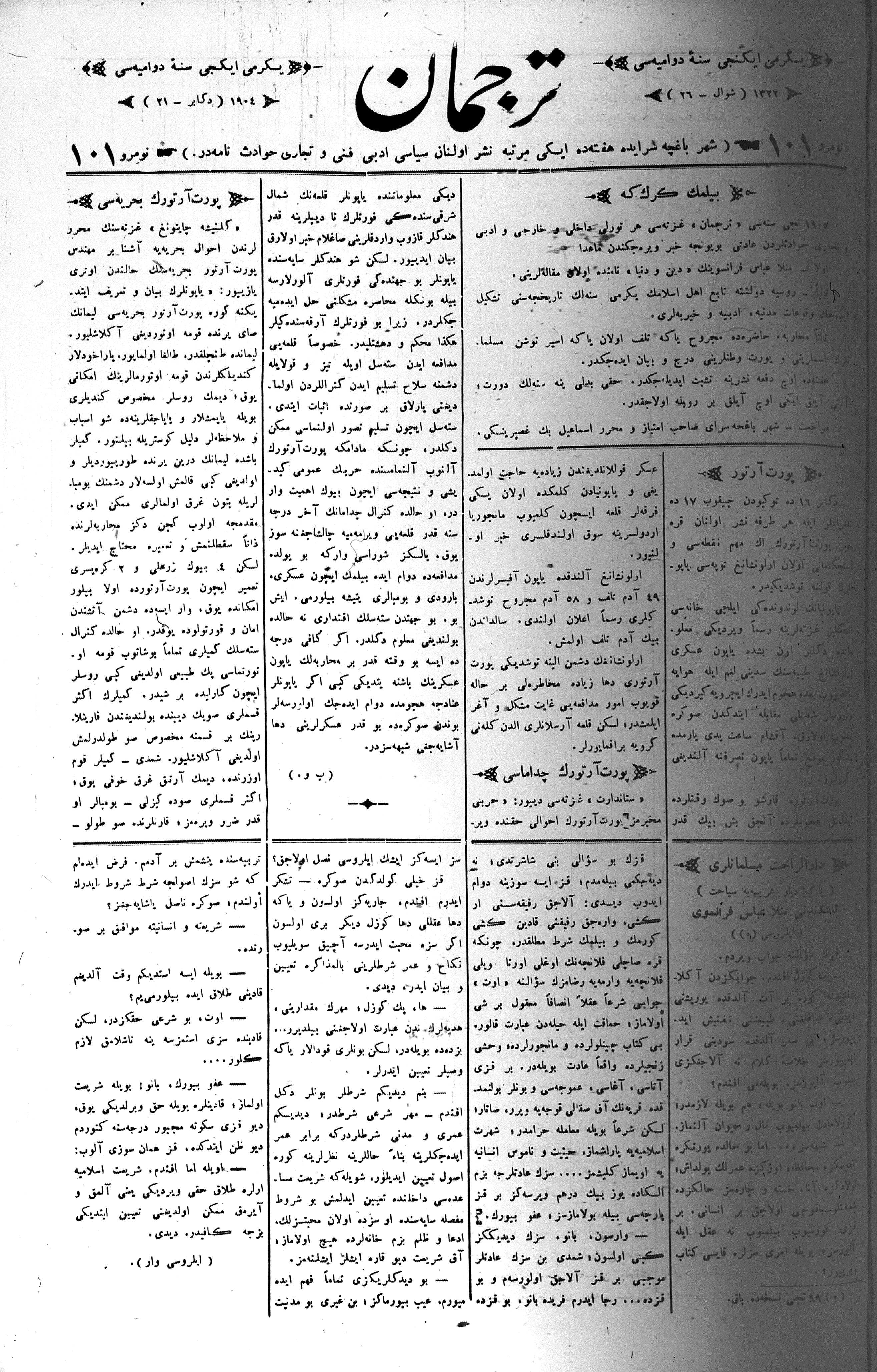 Tercüman, 21 December 1904 Year 22 No 101