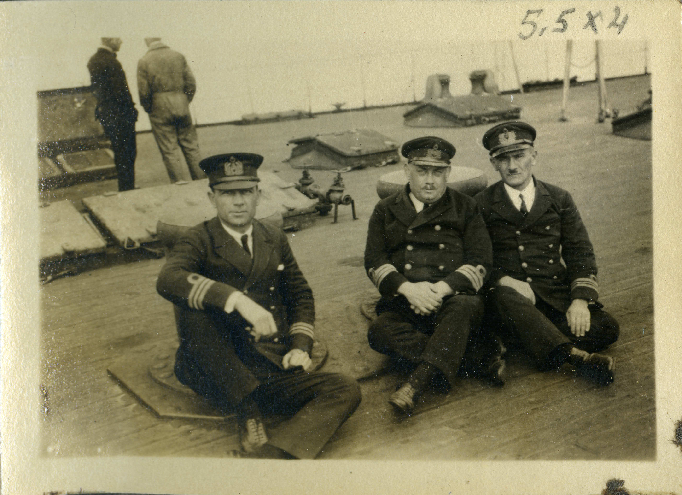 Türk donanmasından bir savaş gemisinin güvertesinde Türk bahriye subaylarının çekilen fotoğrafı