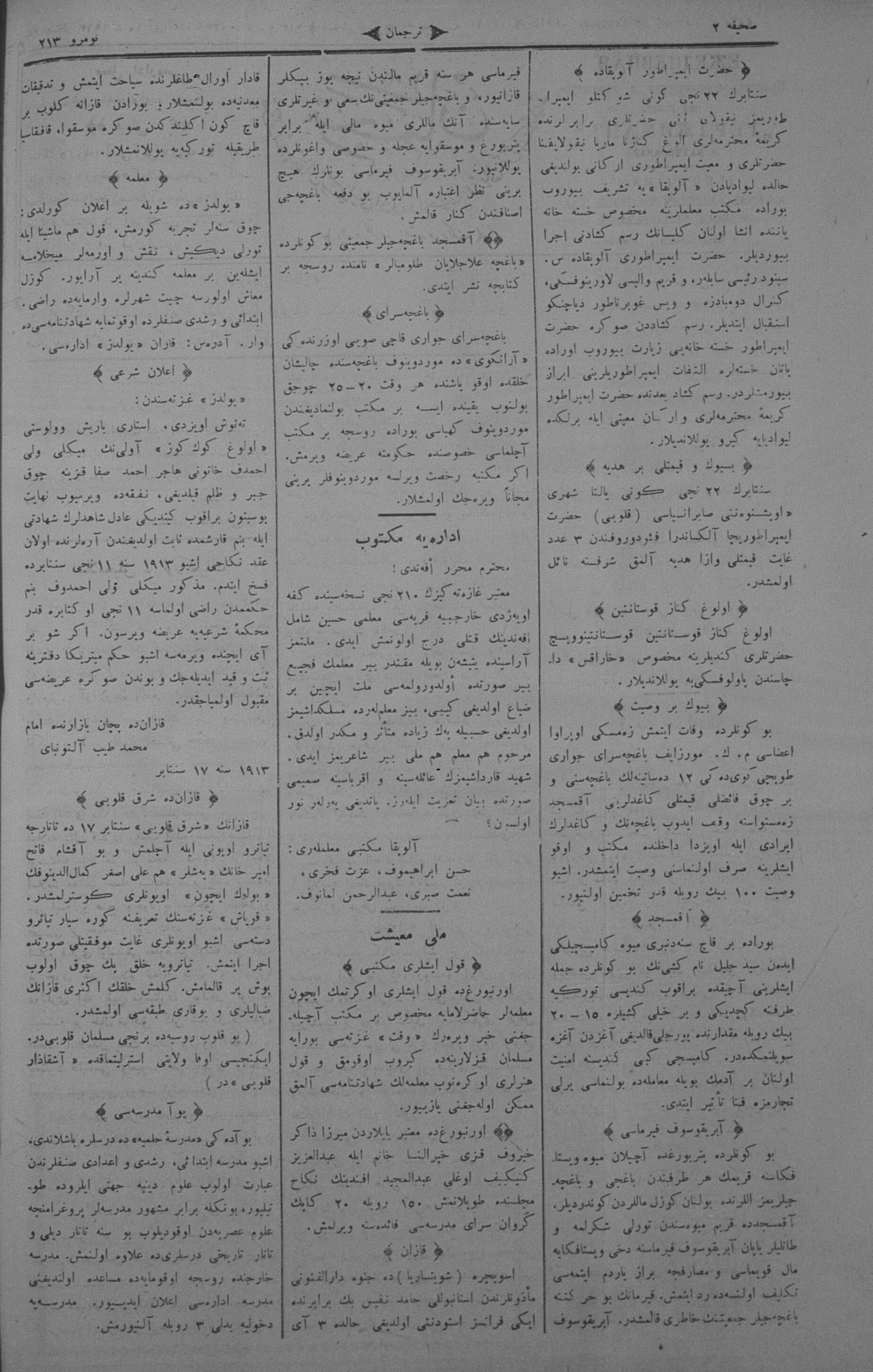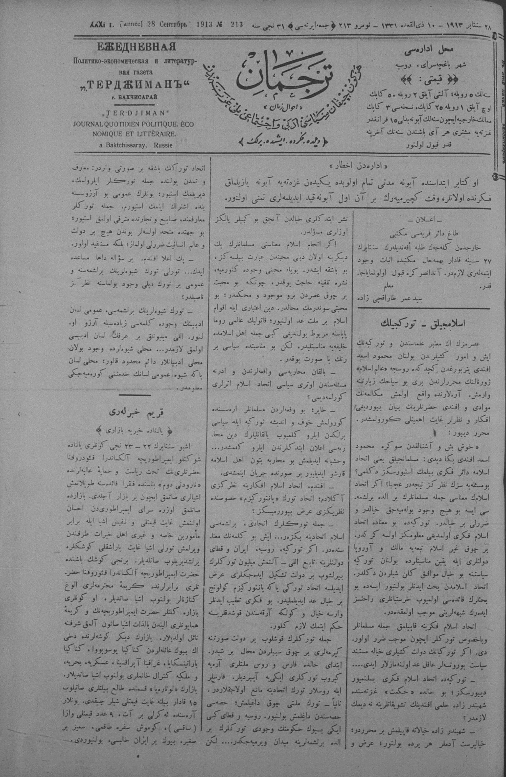Tercüman, 28 September 1913 Year 31 No 213