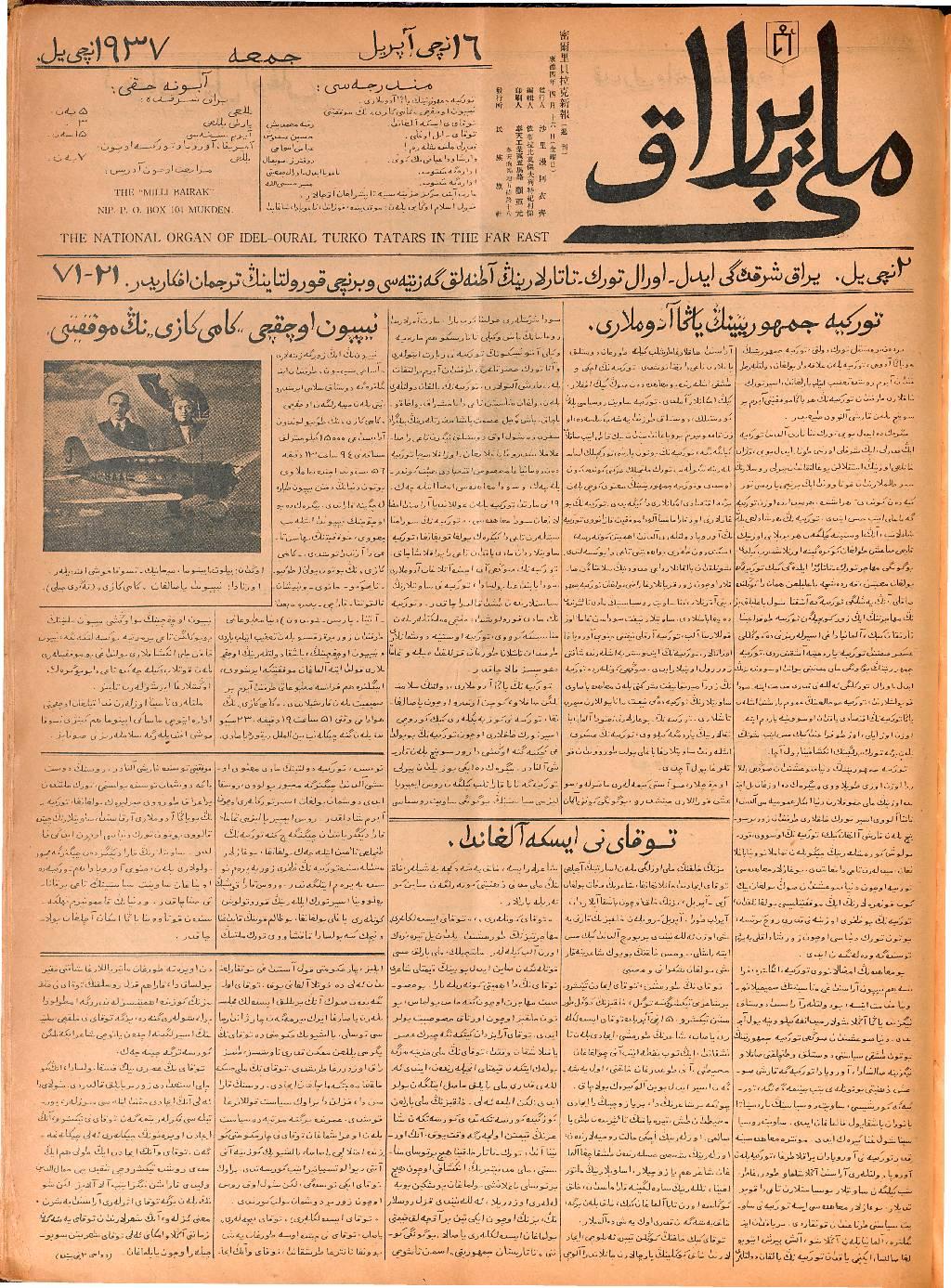 The Milli Bayrak newspaper was printed in Mukden.