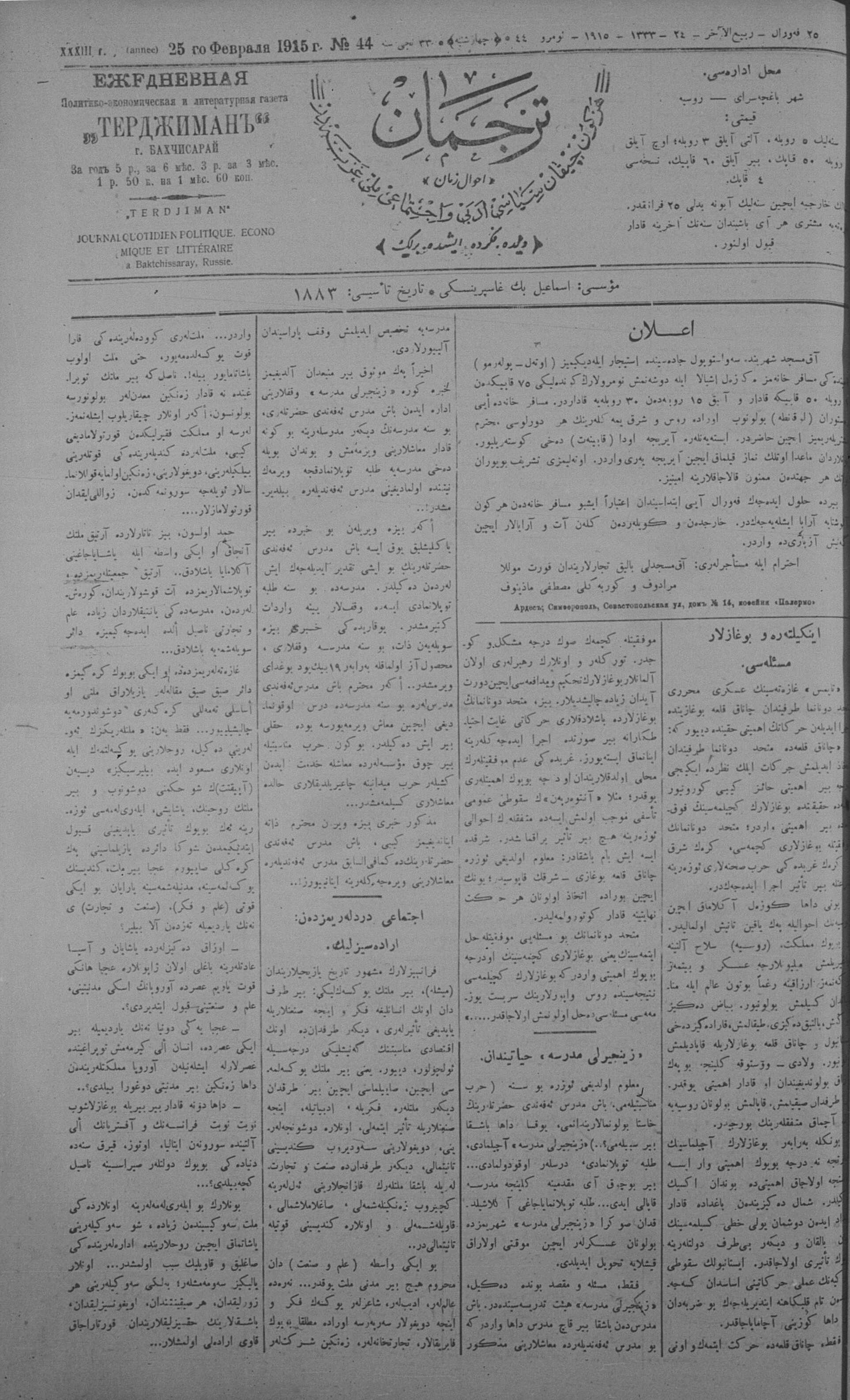 Turkish-Russian newspaper published in Crimea by İsmail Gaspıralı.