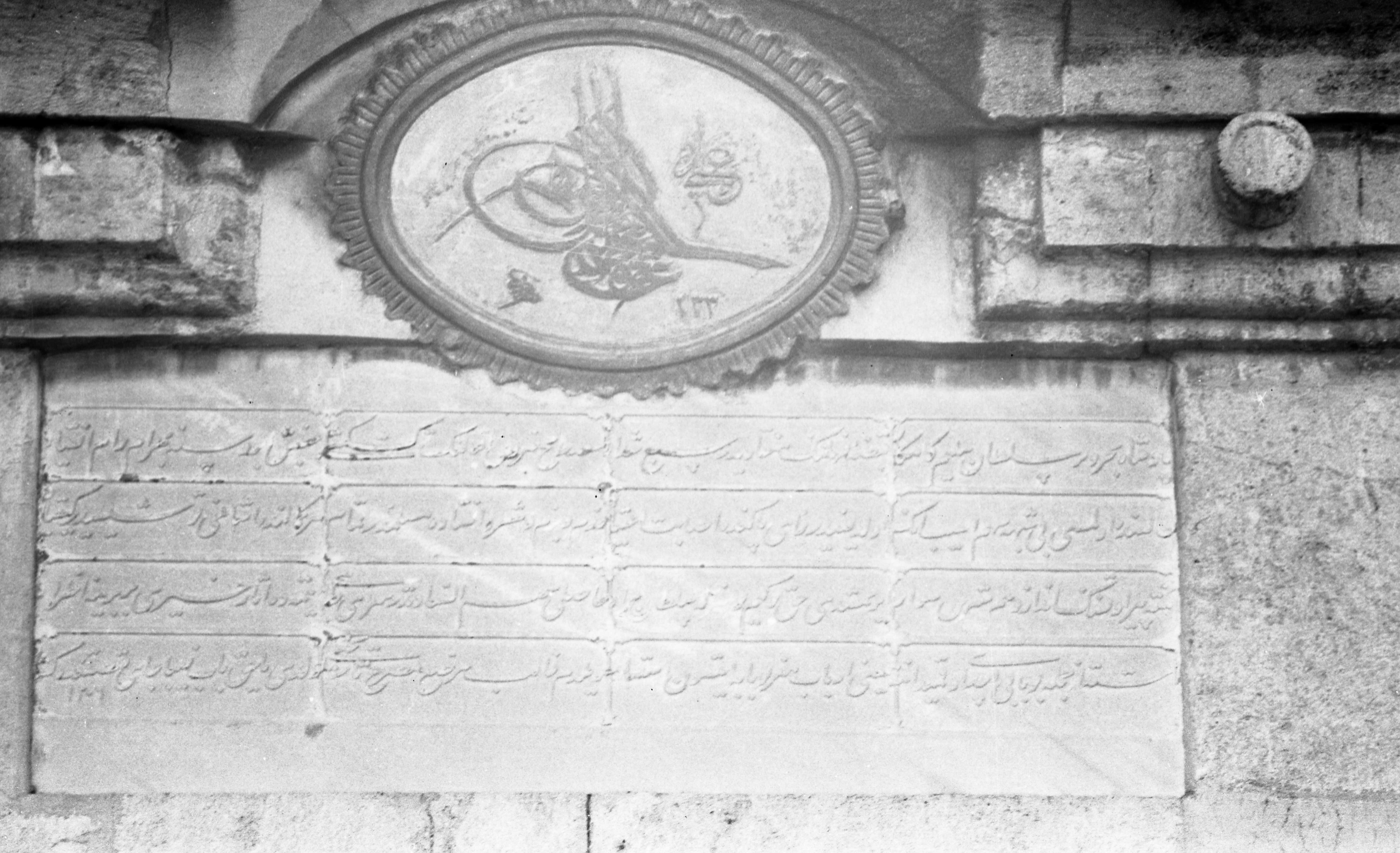Aynalıkavak Kasrı'nın arkasındaki dış giriş kapısı üzerindeki tuğra ve 1206 tarihli kitabe
