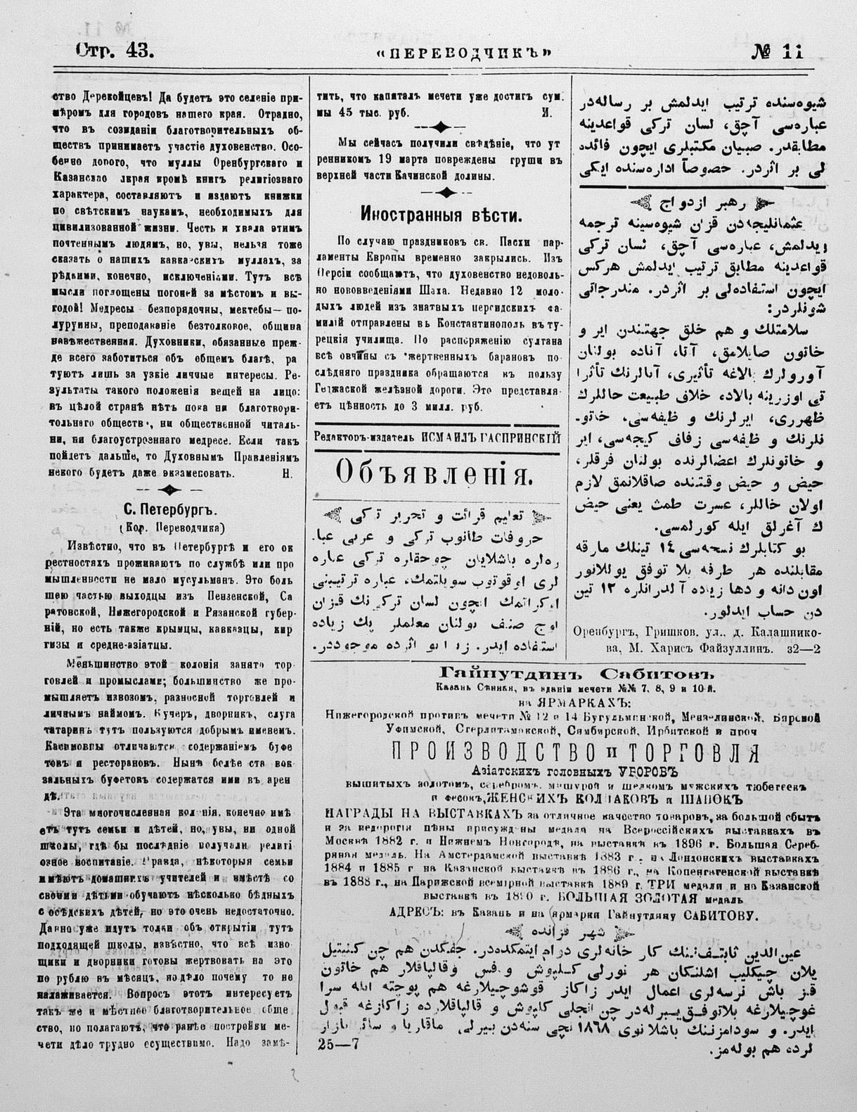 Turkish-Russian newspaper published in Crimea by İsmail Gaspıralı.