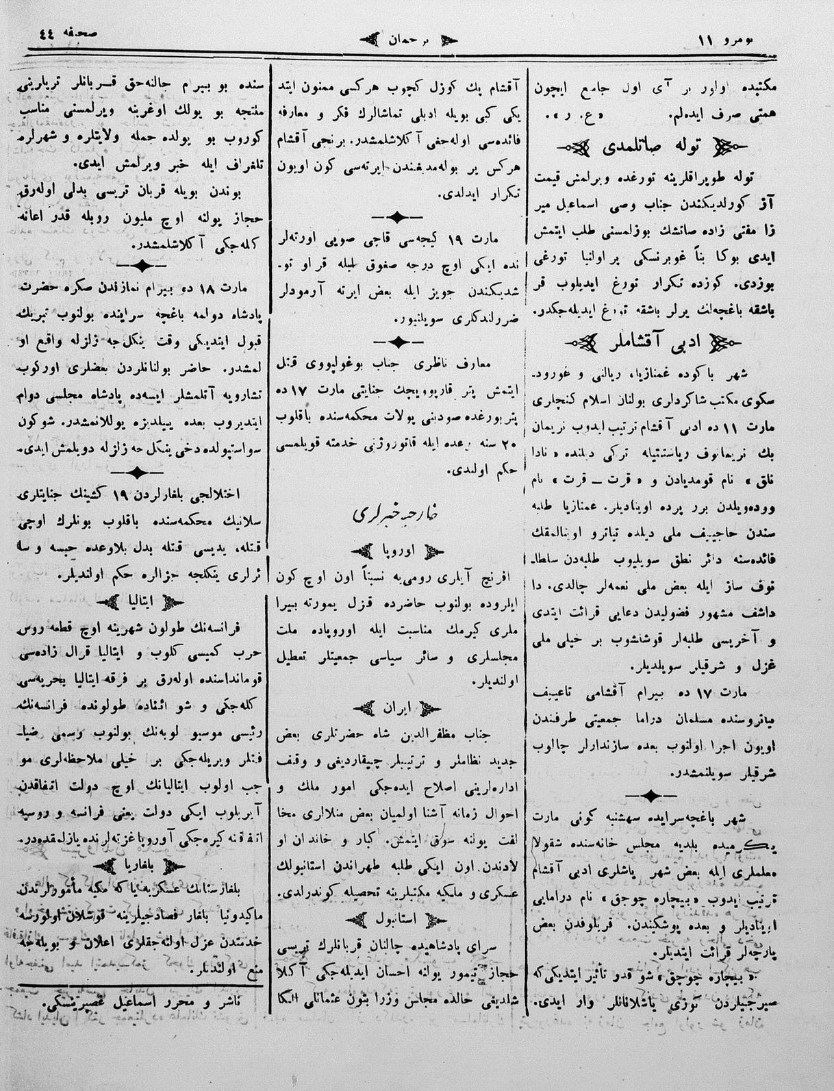 The name of the newspaper changed to Tercüman-ı Ahval-i Zaman in 1905. In 1909, it started to be published under its first name, Tercüman.