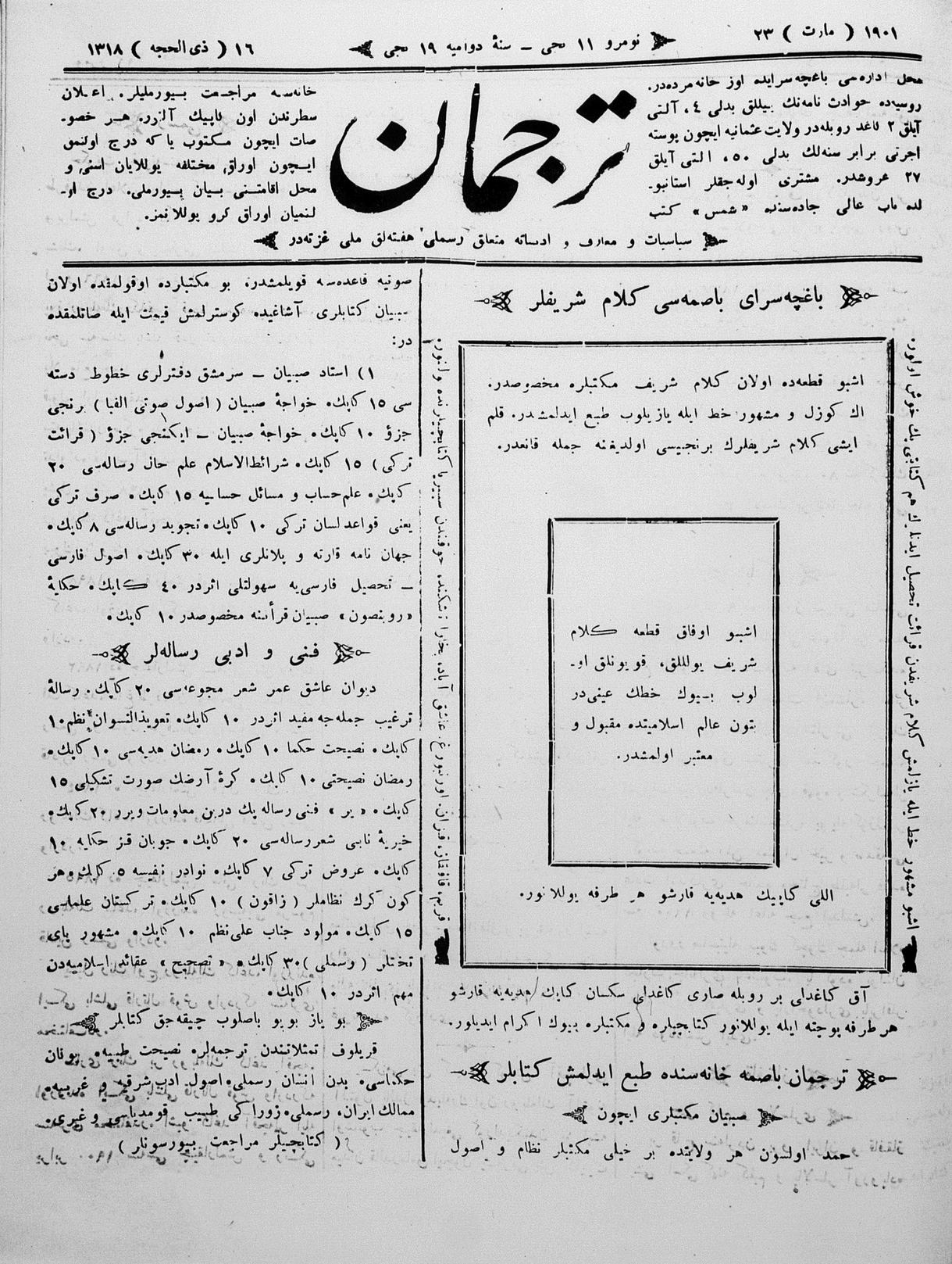 Tercüman, 23 March 1901 Year 19 No 11