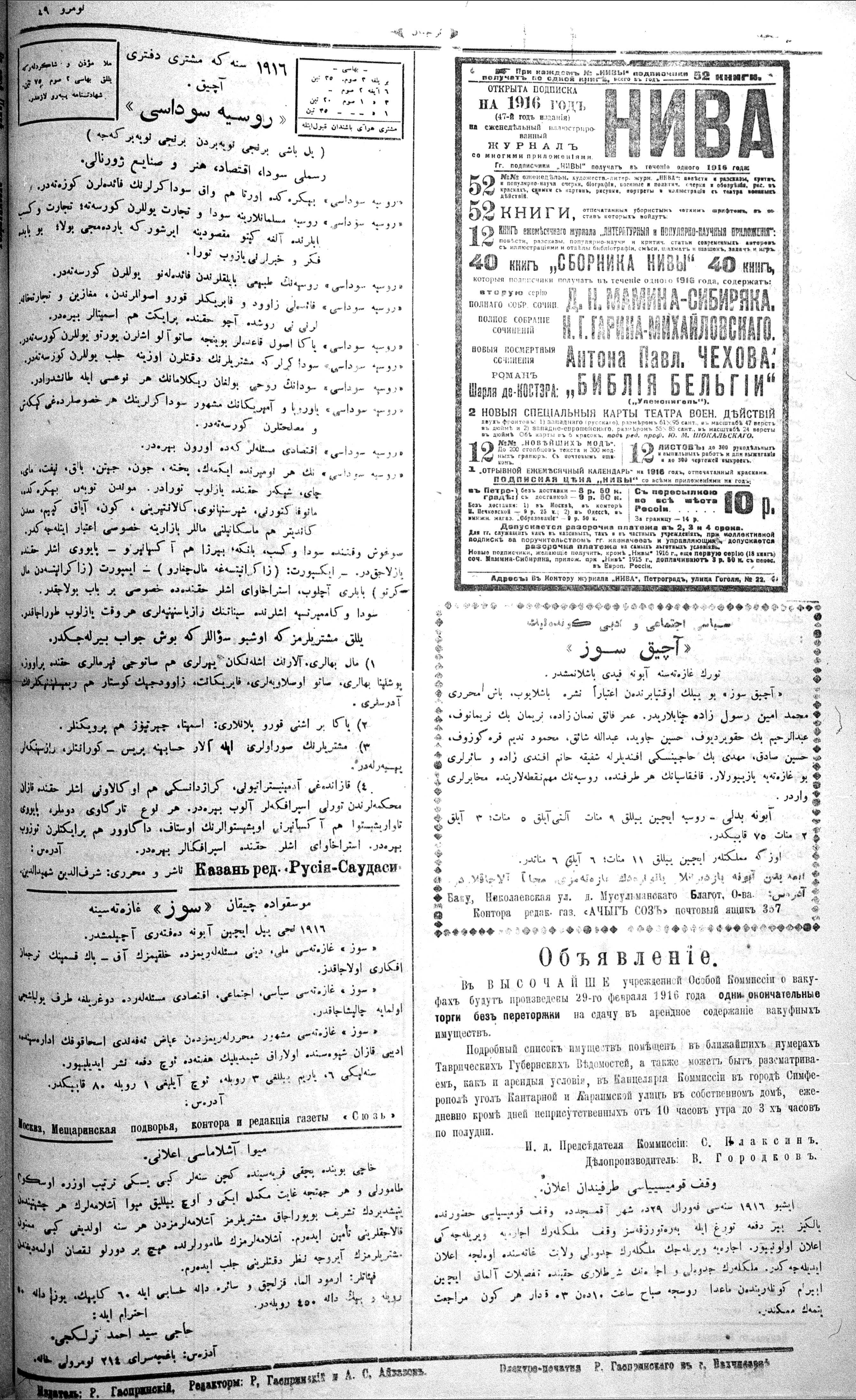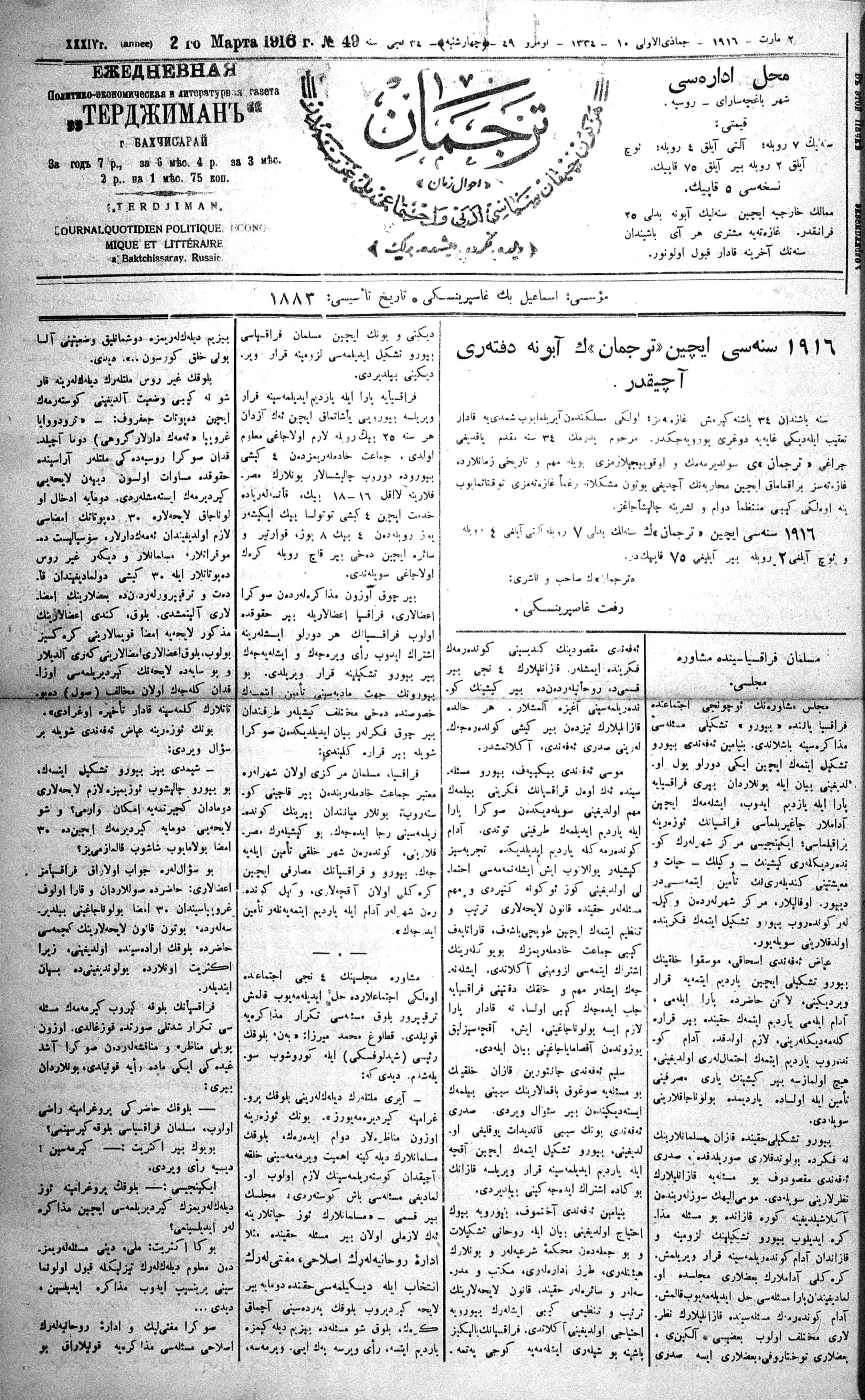 Turkish-Russian newspaper published in Crimea by İsmail Gaspıralı.