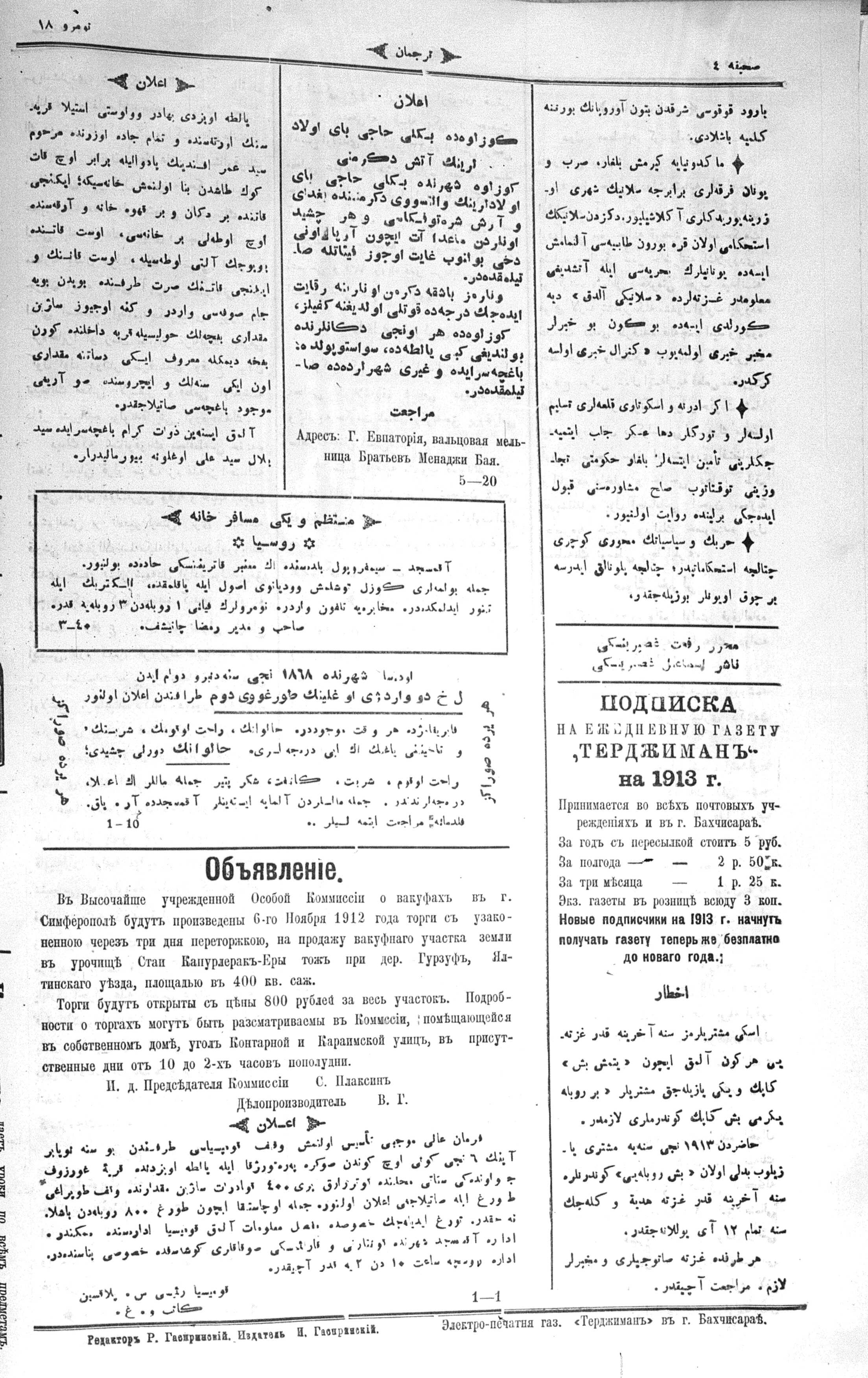 Turkish-Russian newspaper published in Crimea by İsmail Gaspıralı.