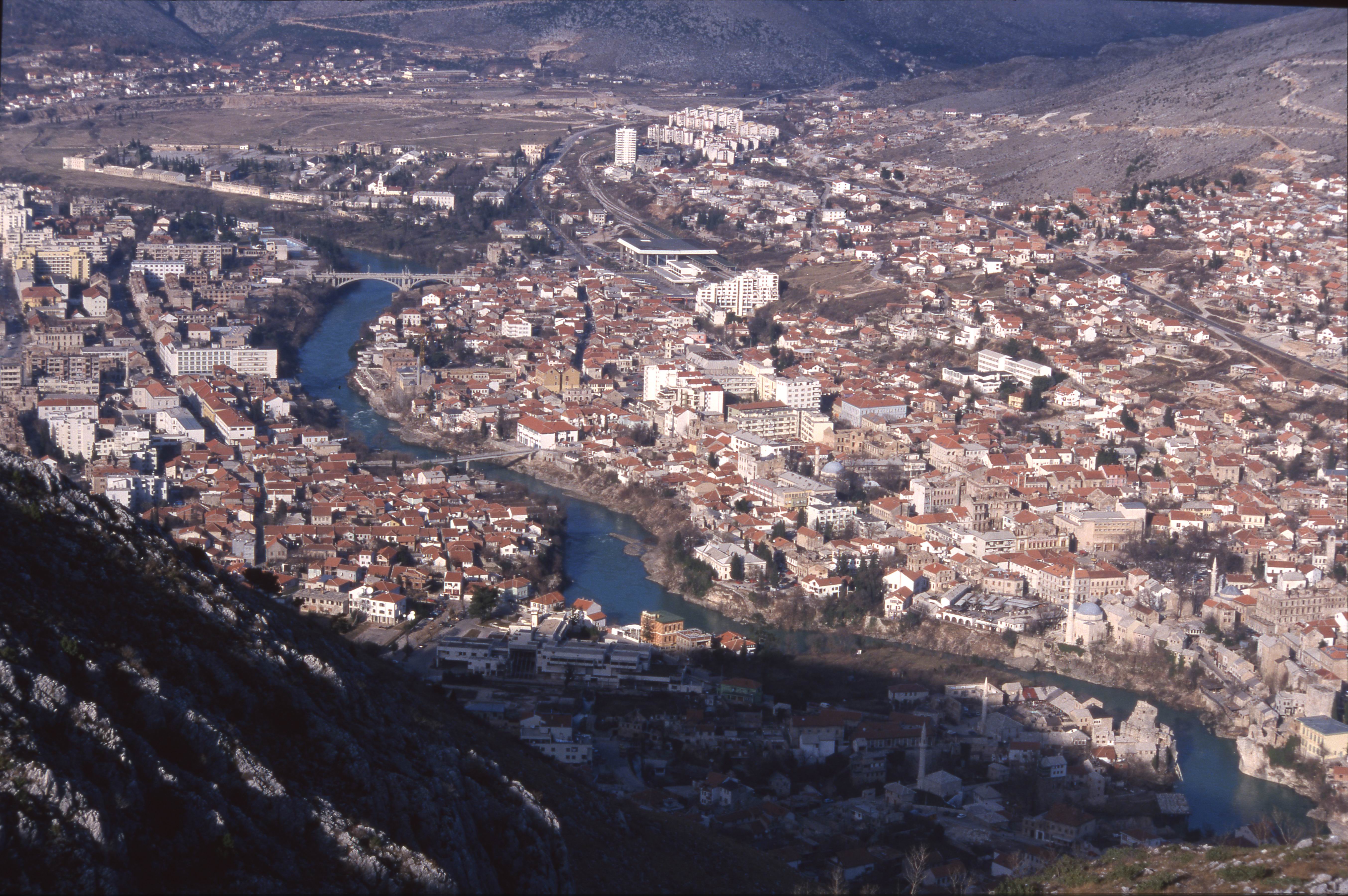 View of the area between the Musala Bridge and Koski Mehmed Pasha Mosque from Hum Hill in Mostar