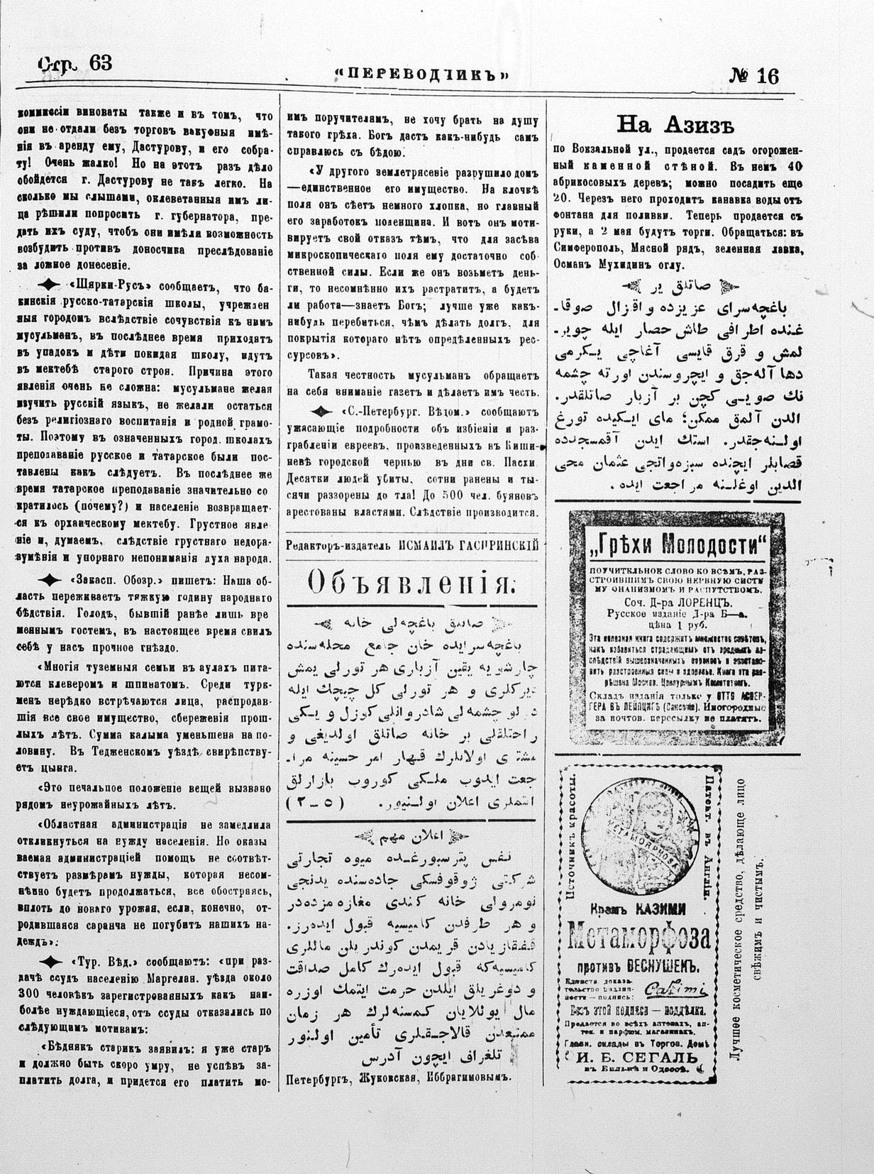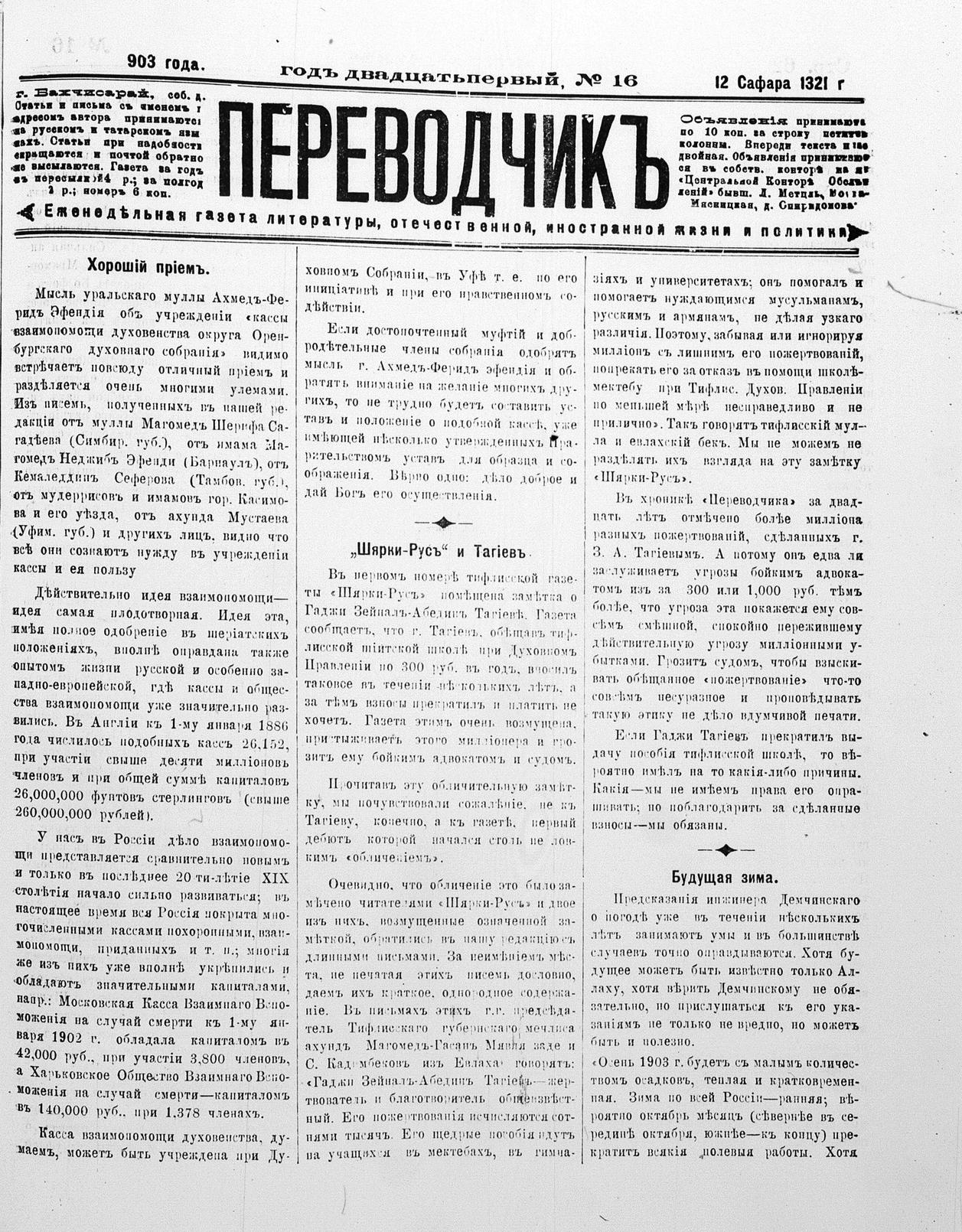 Turkish-Russian newspaper published in Crimea by İsmail Gaspıralı.