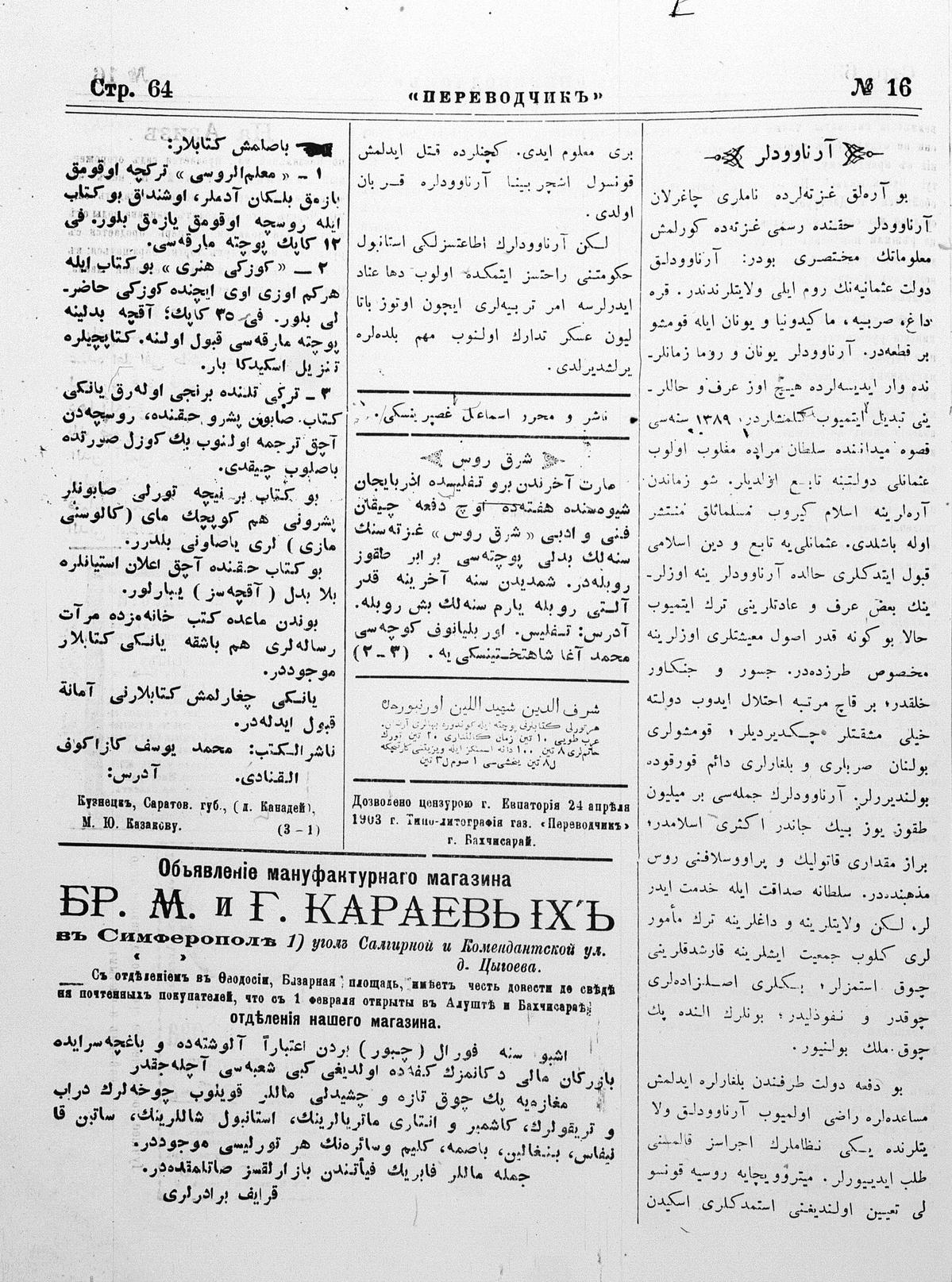 Tercüman, 26 April 1903 Year 21 No 16