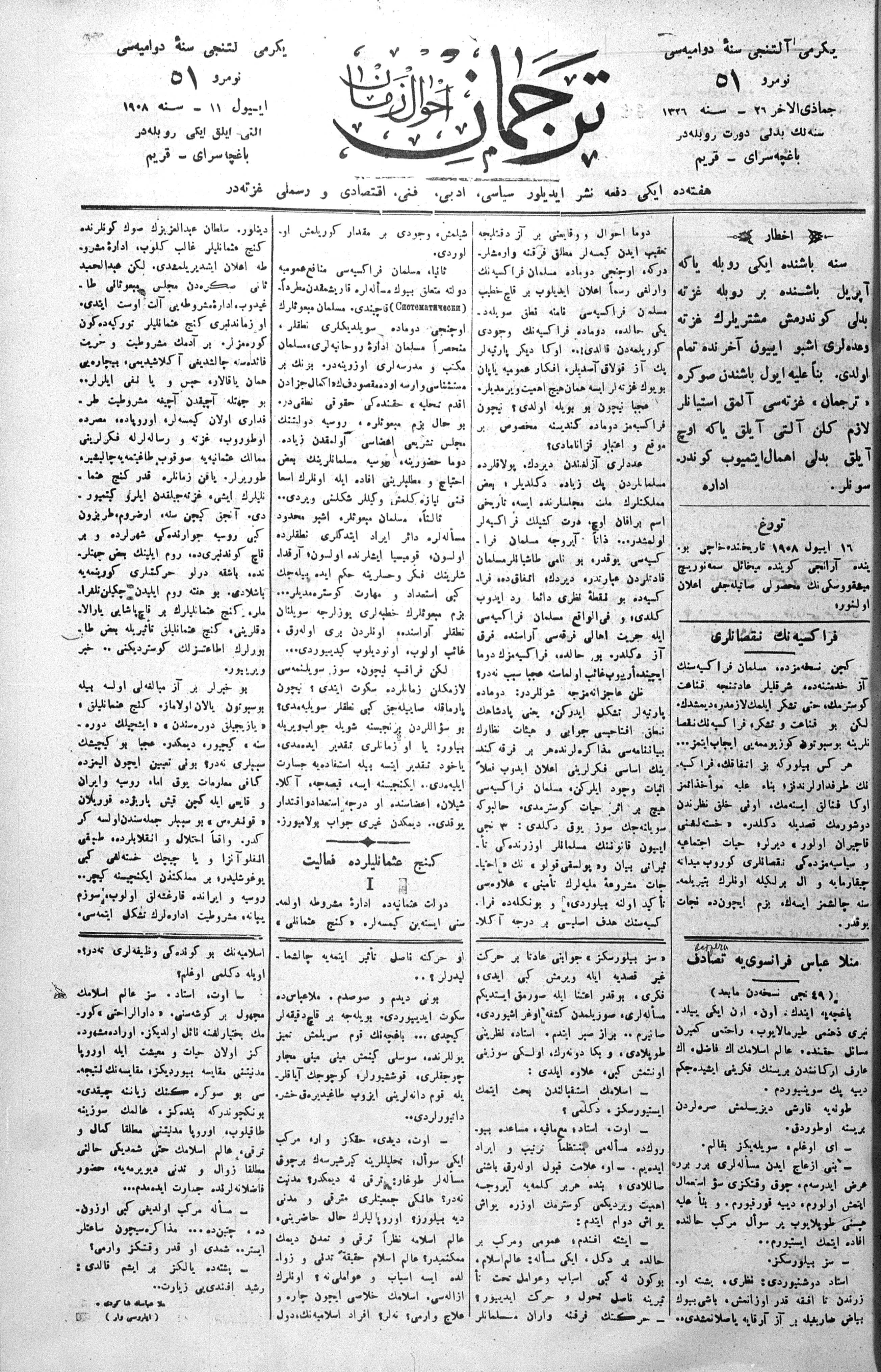 Tercüman, 11 July 1908 Year 26 No 51