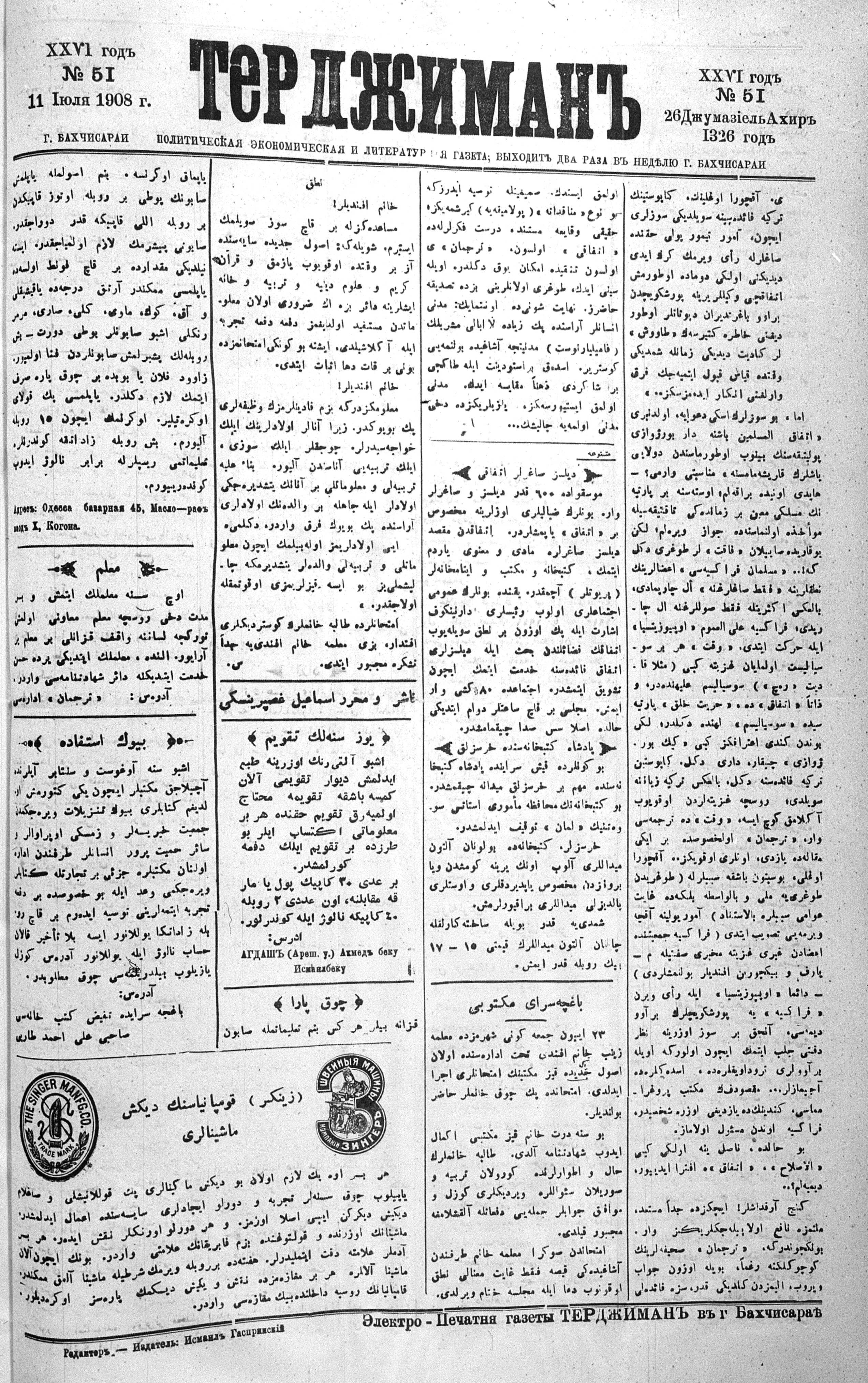 Turkish-Russian newspaper published in Crimea by İsmail Gaspıralı.