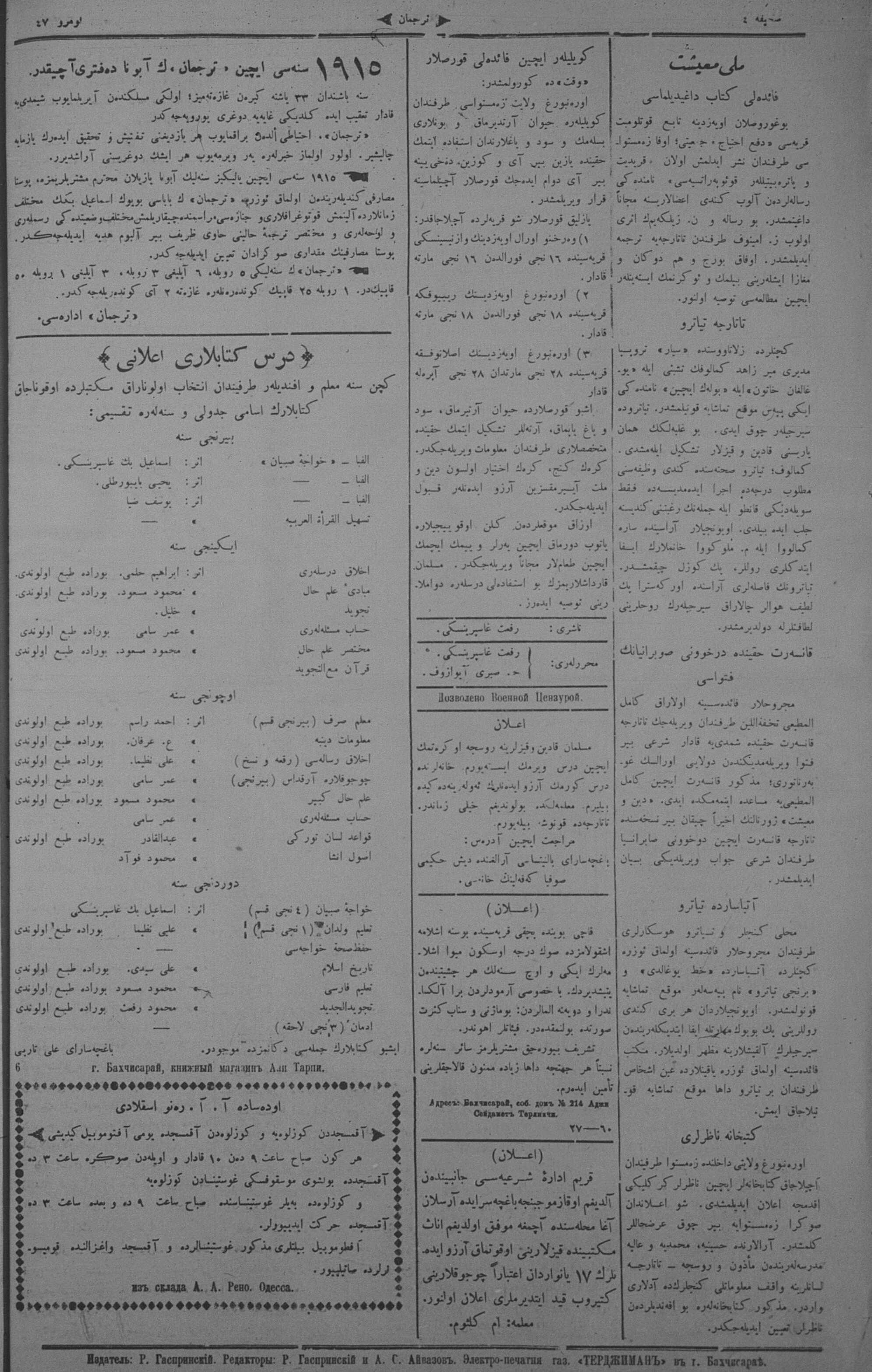 Turkish-Russian newspaper published in Crimea by İsmail Gaspıralı.