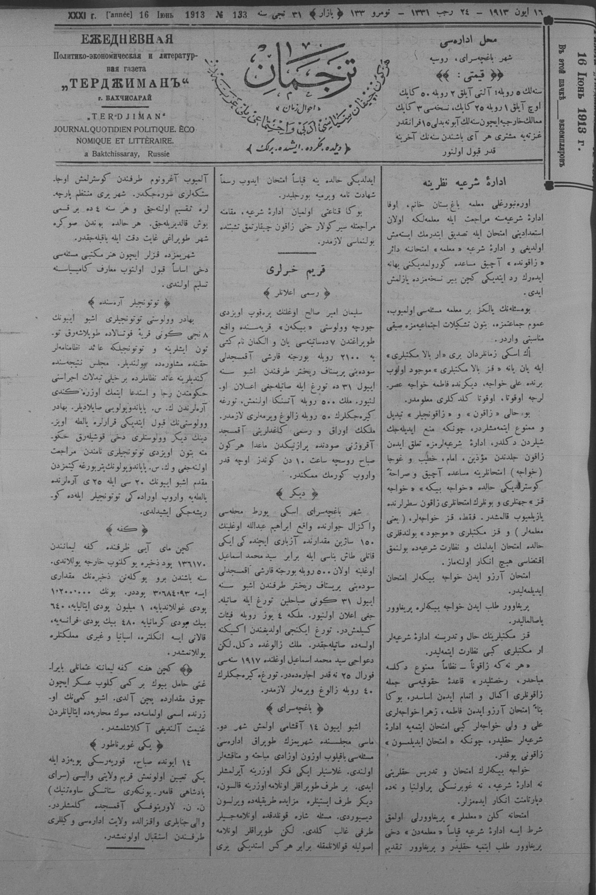 Tercüman, 16 June 1913 Year 31 No 133