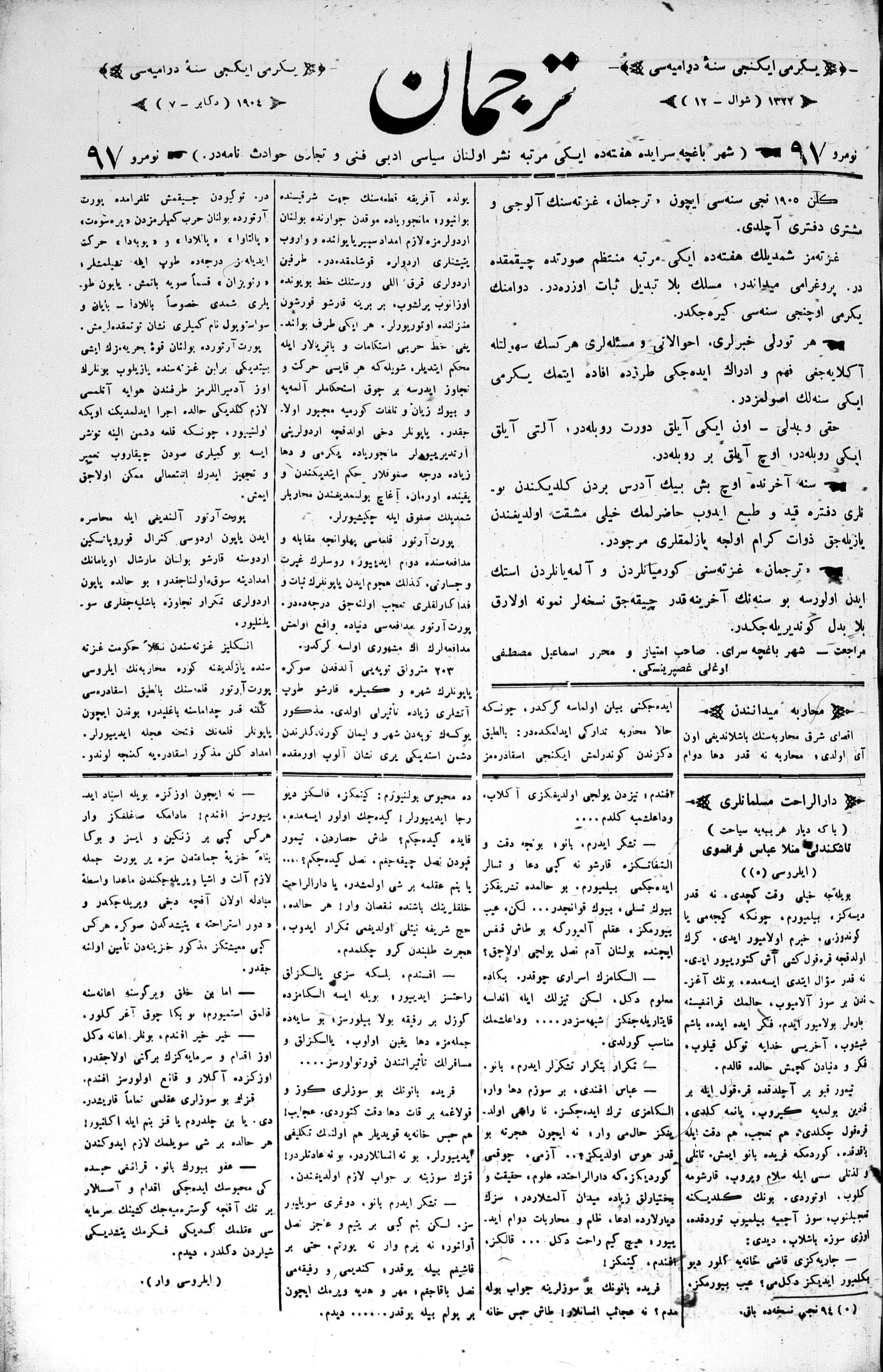 The name of the newspaper changed to Tercüman-ı Ahval-i Zaman in 1905. In 1909, it started to be published under its first name, Tercüman.