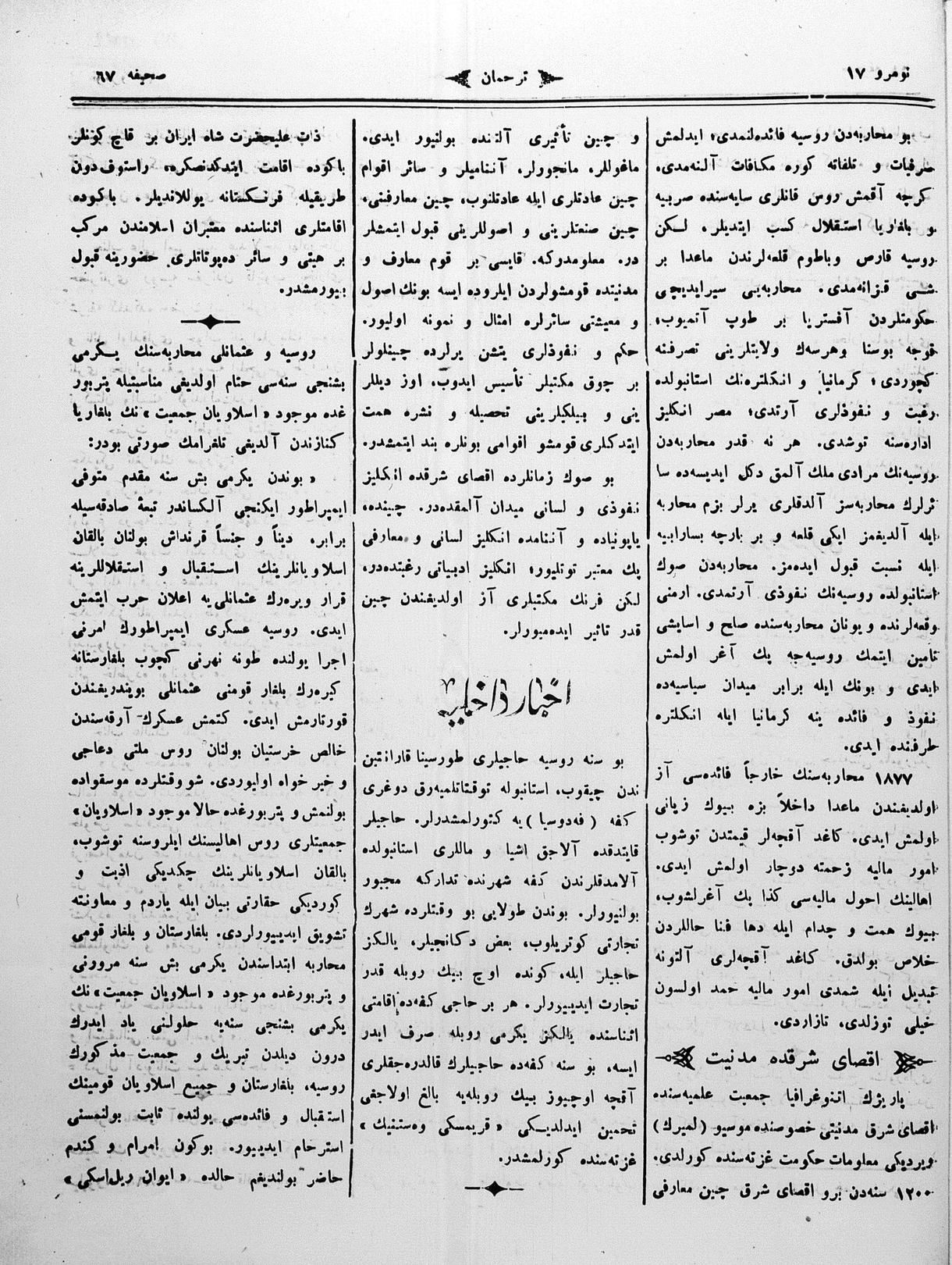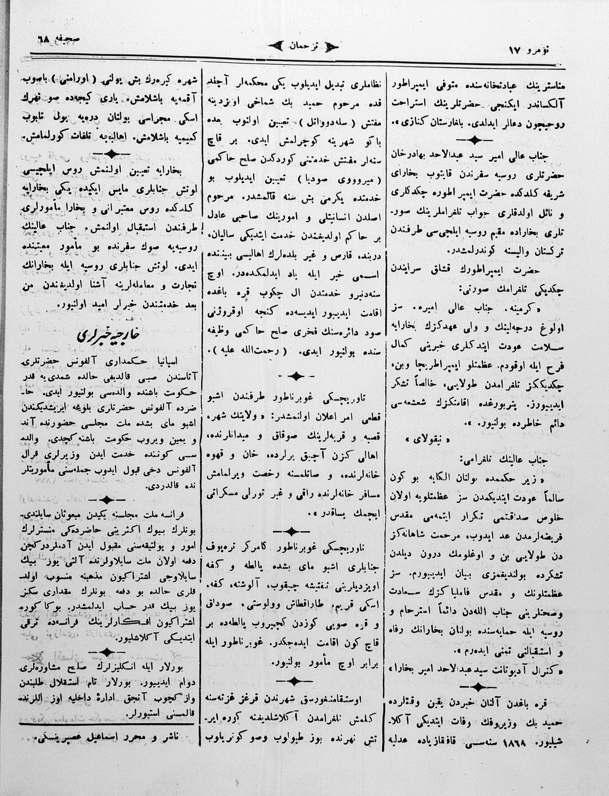 The name of the newspaper changed to Tercüman-ı Ahval-i Zaman in 1905. In 1909, it started to be published under its first name, Tercüman.