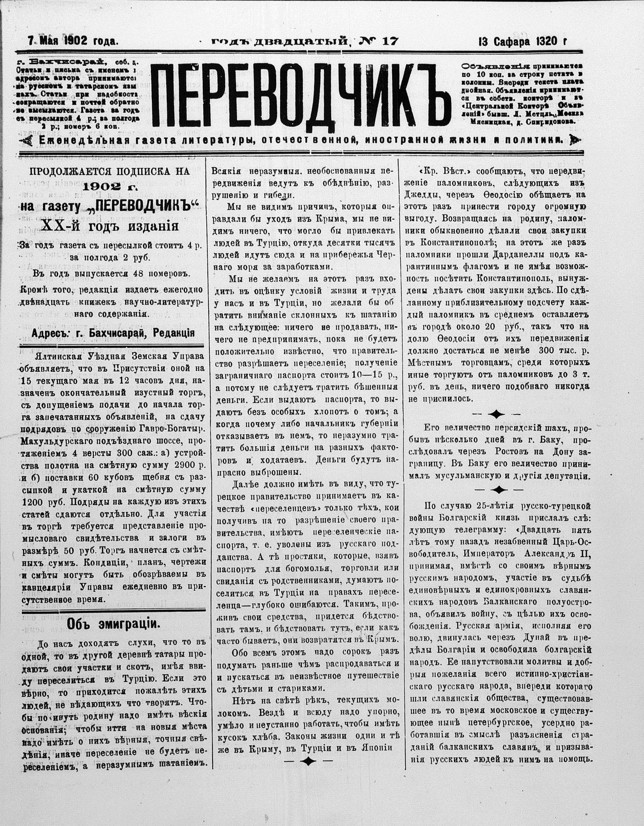 Turkish-Russian newspaper published in Crimea by İsmail Gaspıralı.