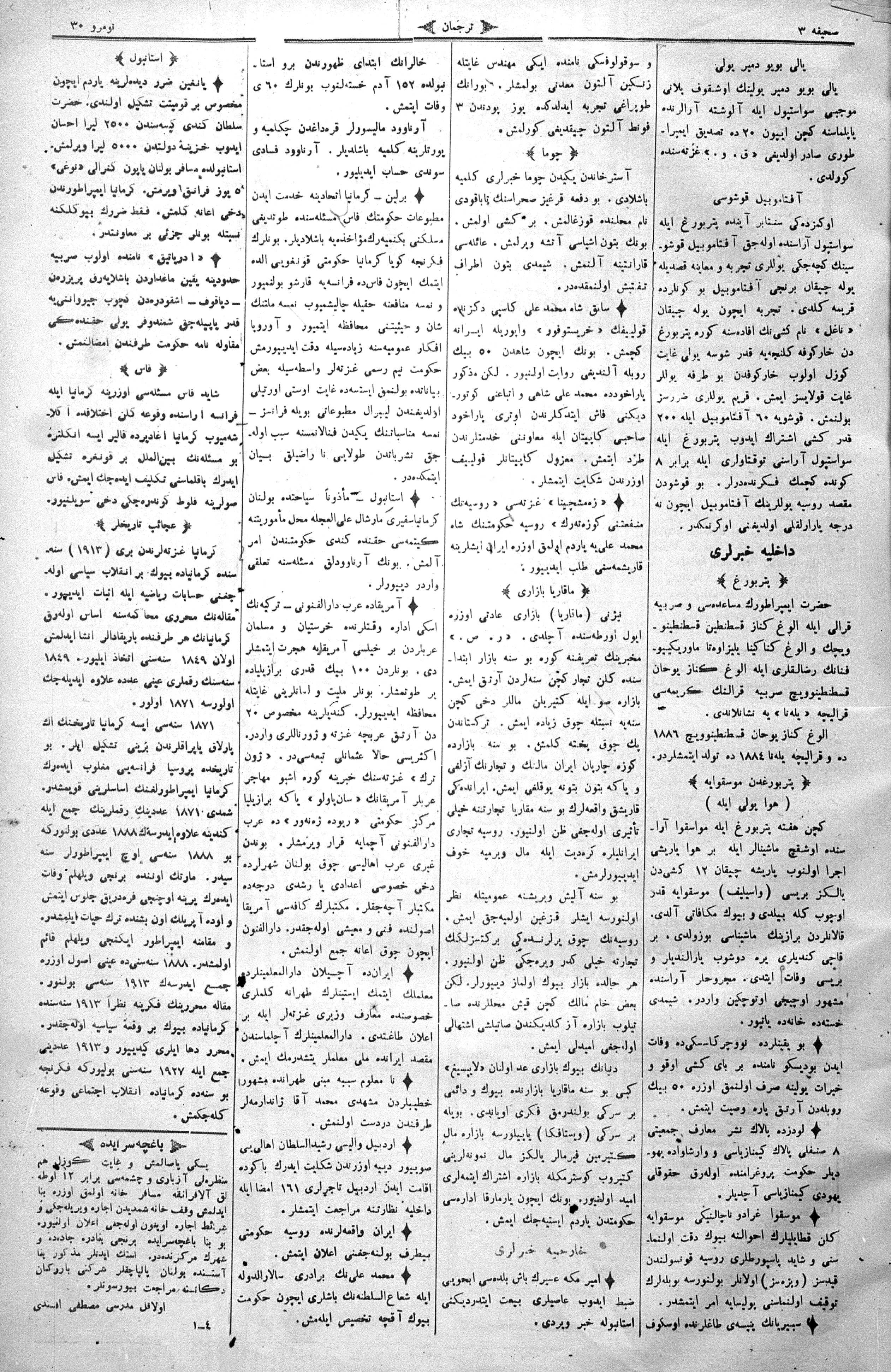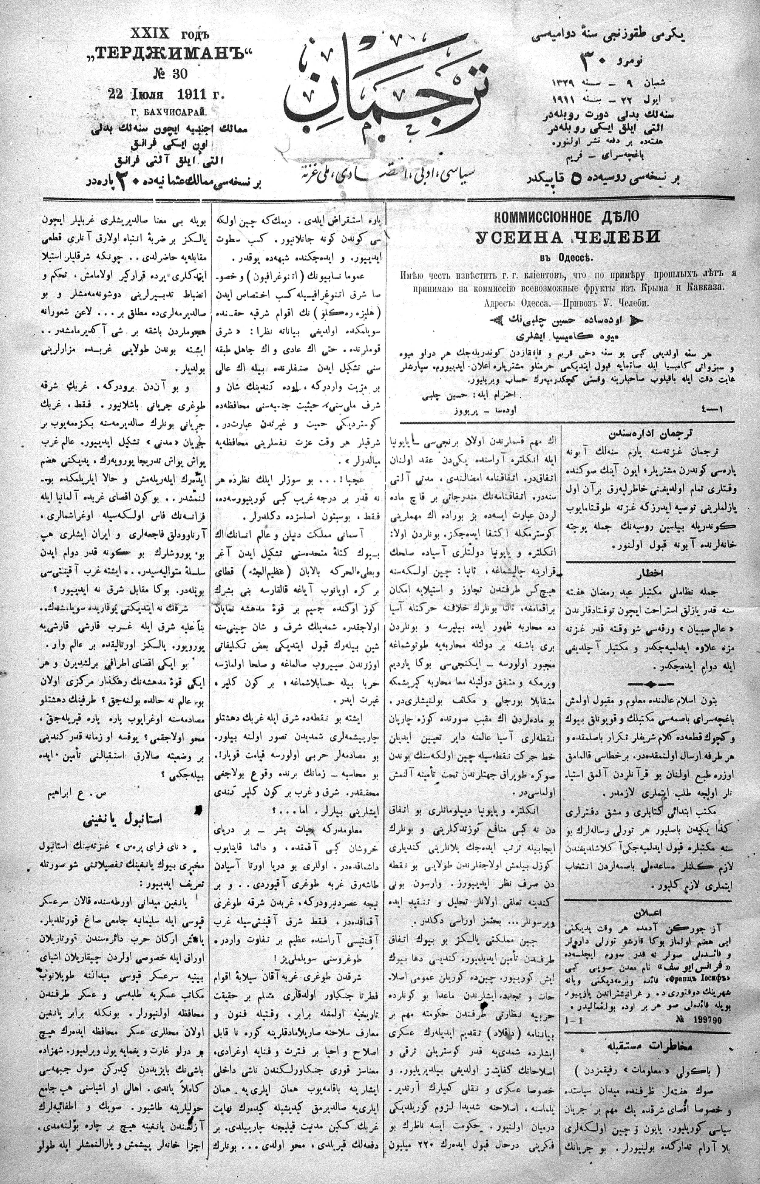Tercüman, 22 July 1911 Year 29 No 30