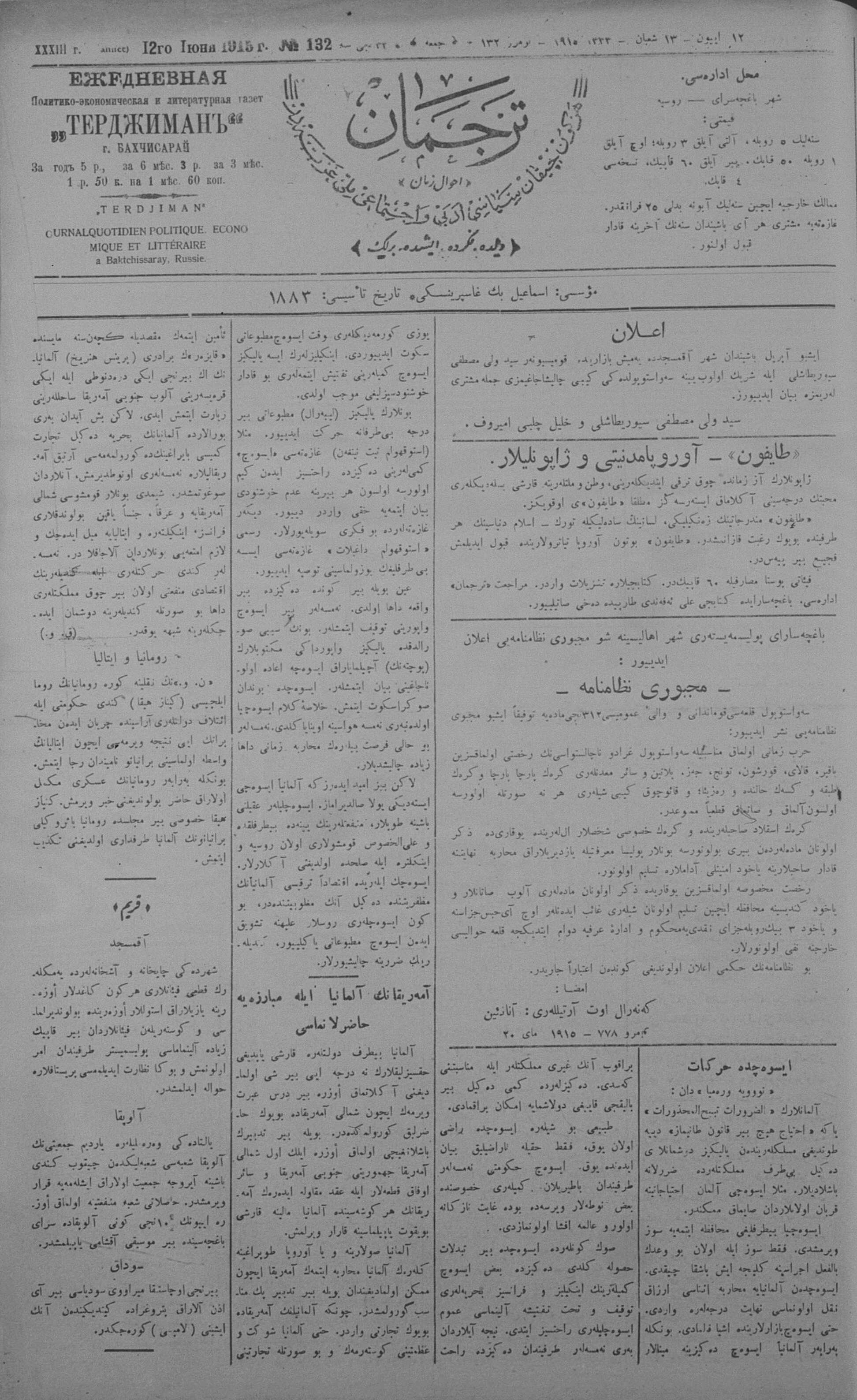 Turkish-Russian newspaper published in Crimea by İsmail Gaspıralı.