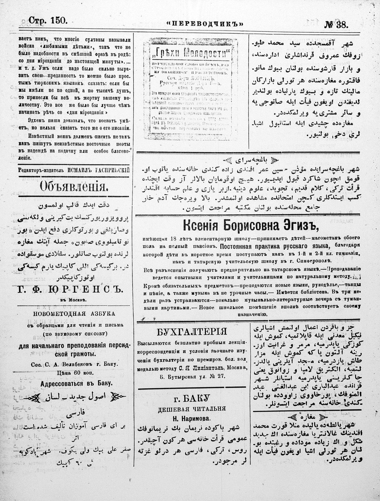 Different spelling of the author name: Gaspıralı, İsmail Bey, 1851-1914.