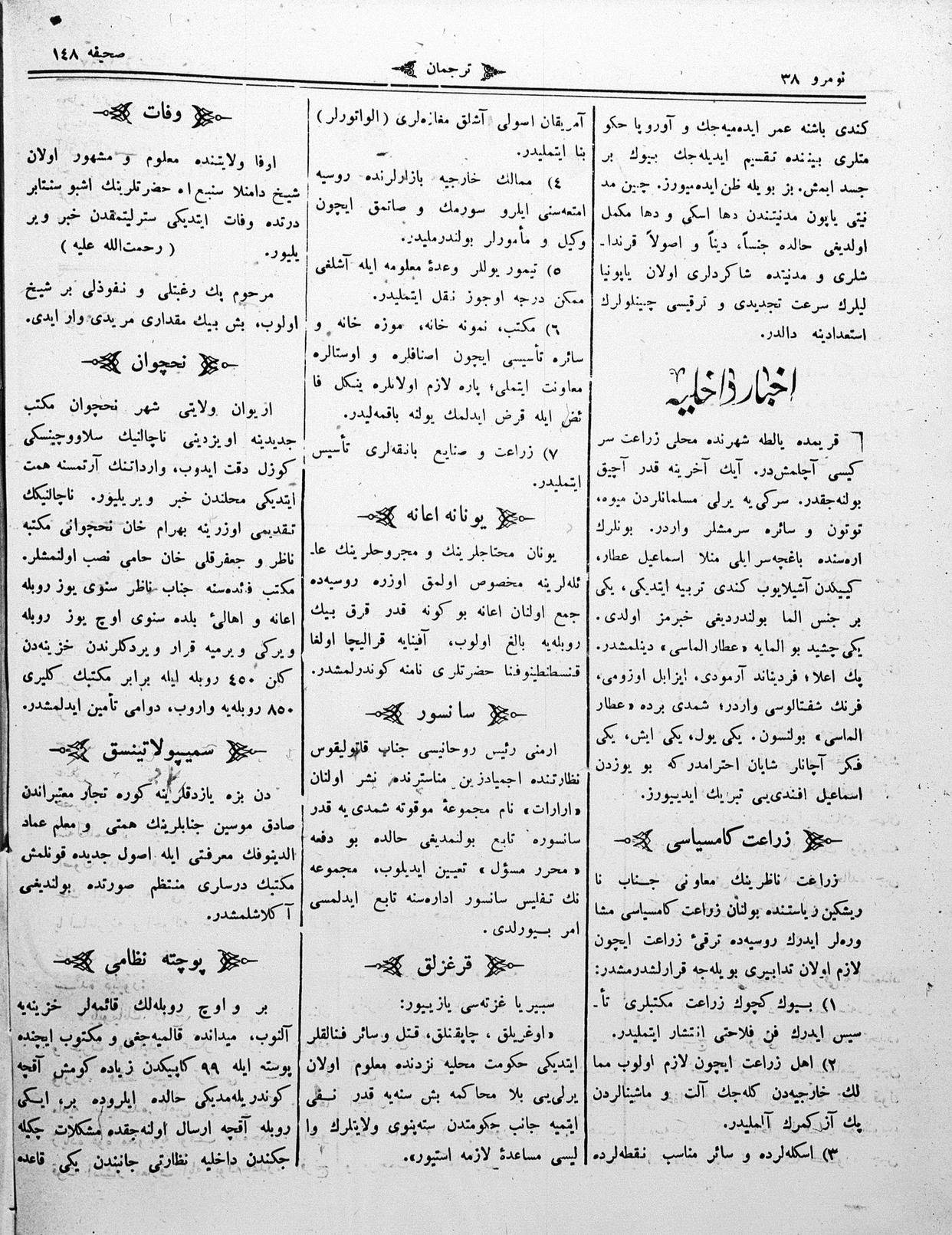 The name of the newspaper changed to Tercüman-ı Ahval-i Zaman in 1905. In 1909, it started to be published under its first name, Tercüman.