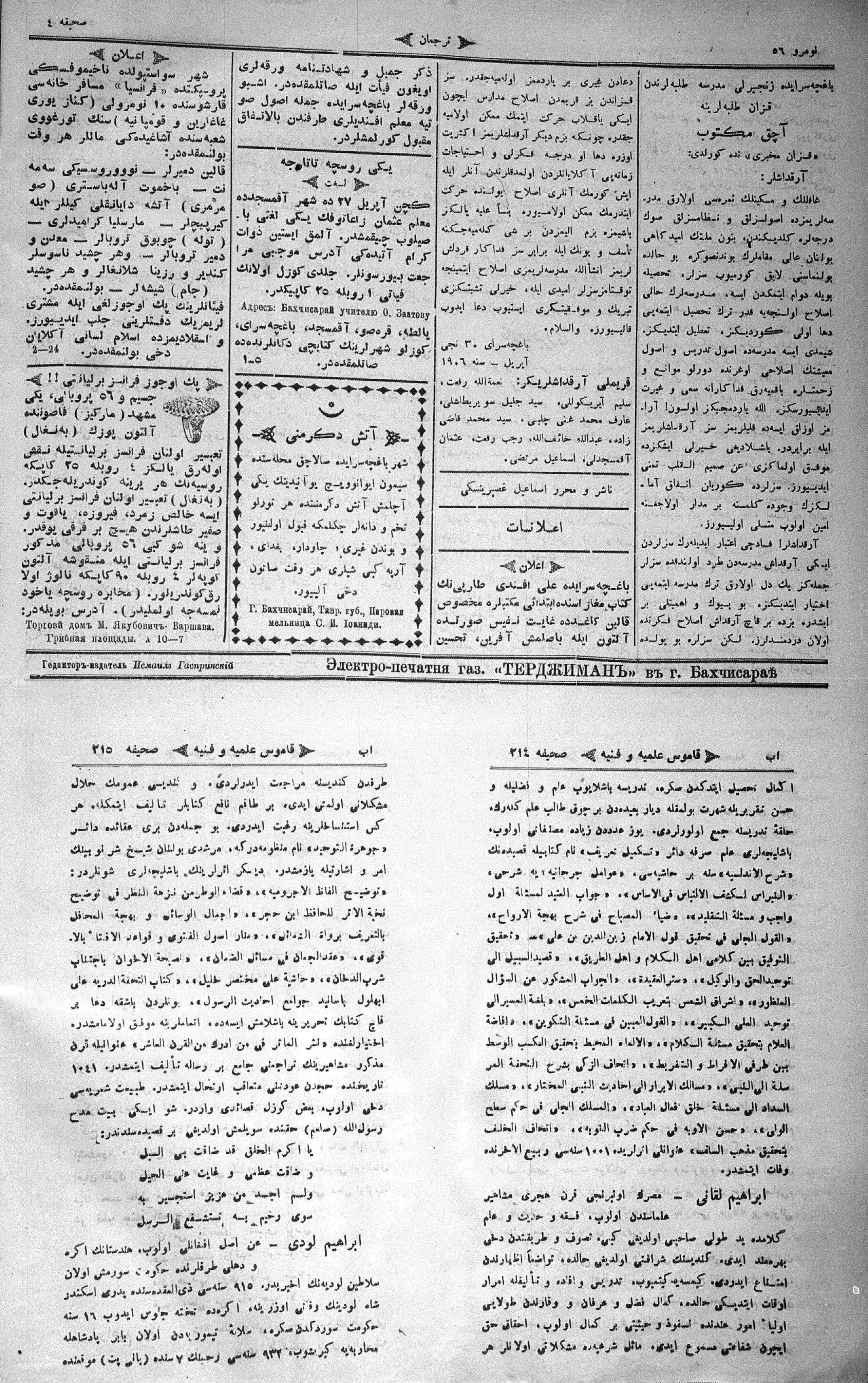 Different spellings of Tercüman: Terdzhiman, Terjuman, Perevodçik and Terjiman.