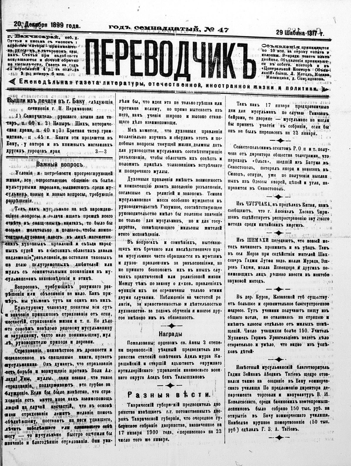 Turkish-Russian newspaper published in Crimea by İsmail Gaspıralı.