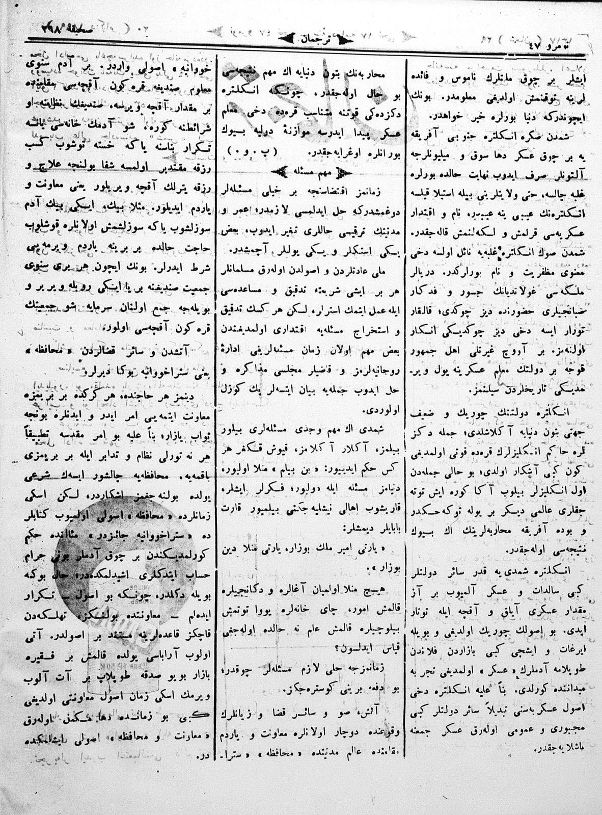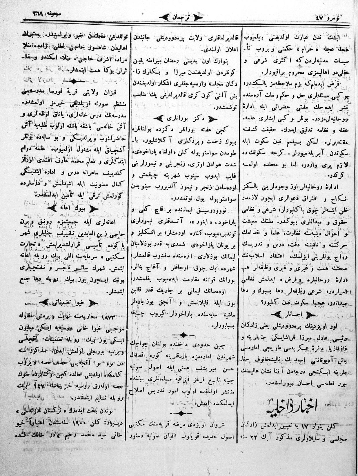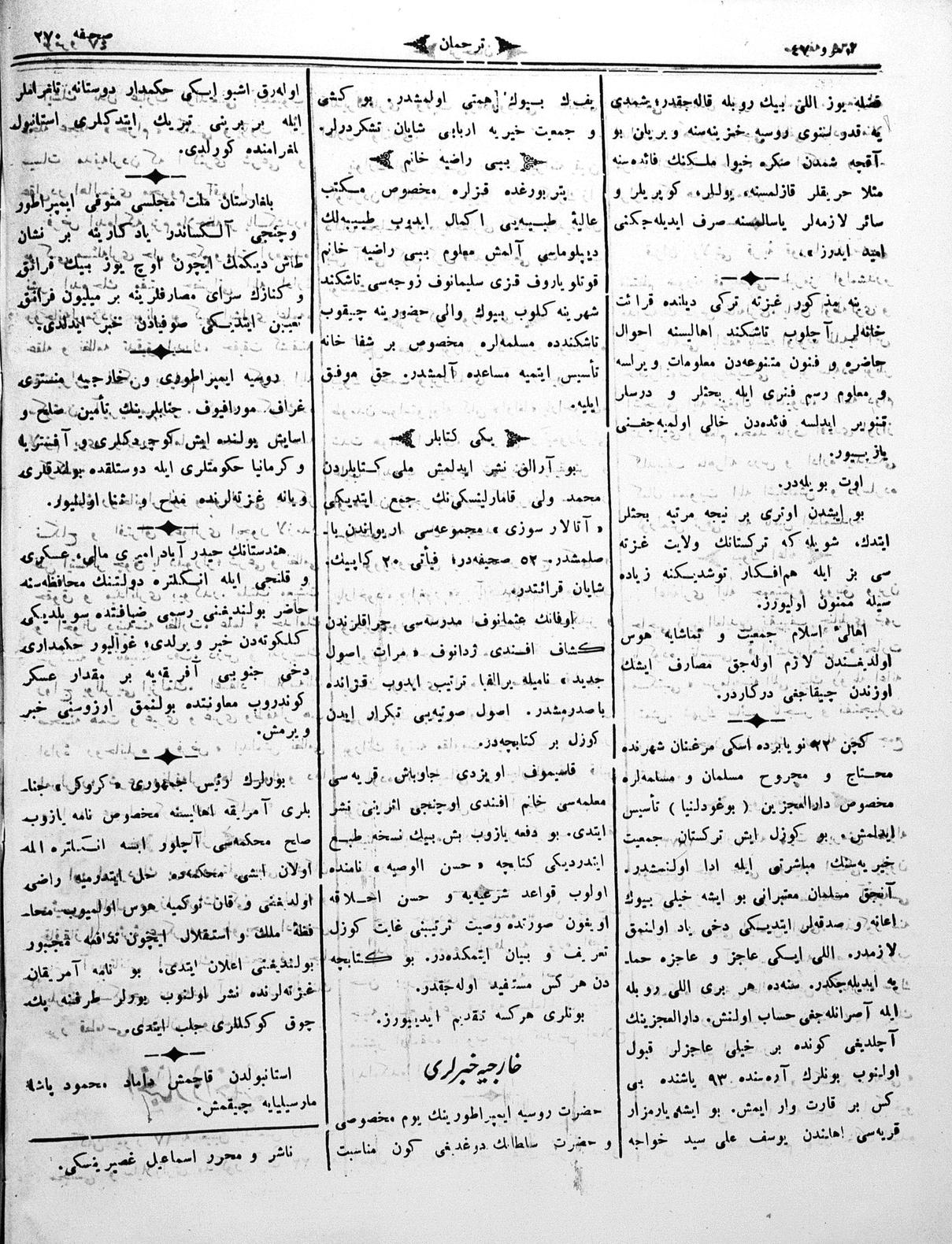 The name of the newspaper changed to Tercüman-ı Ahval-i Zaman in 1905. In 1909, it started to be published under its first name, Tercüman.