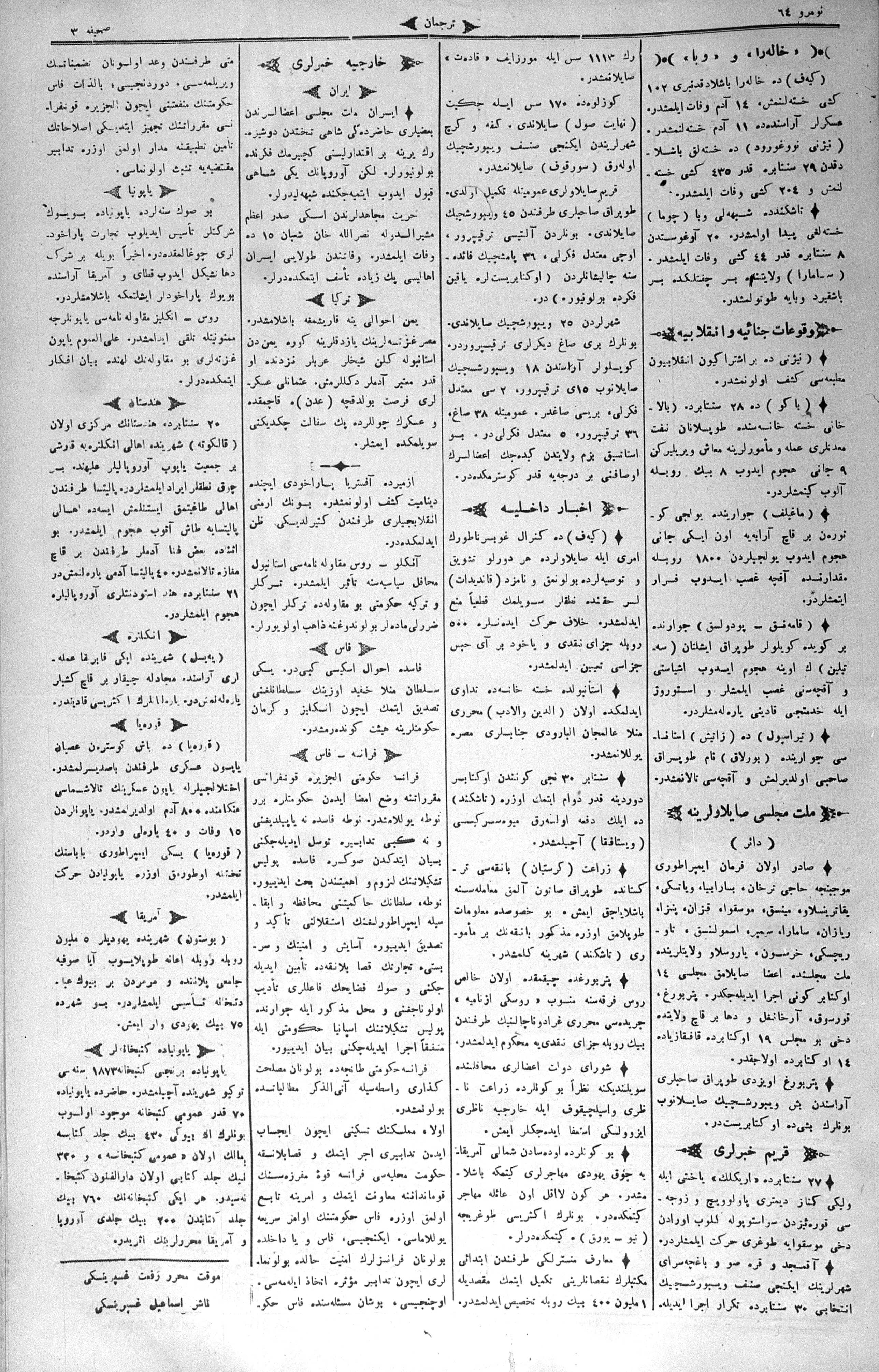 The name of the newspaper changed to Tercüman-ı Ahval-i Zaman in 1905. In 1909, it started to be published under its first name, Tercüman.