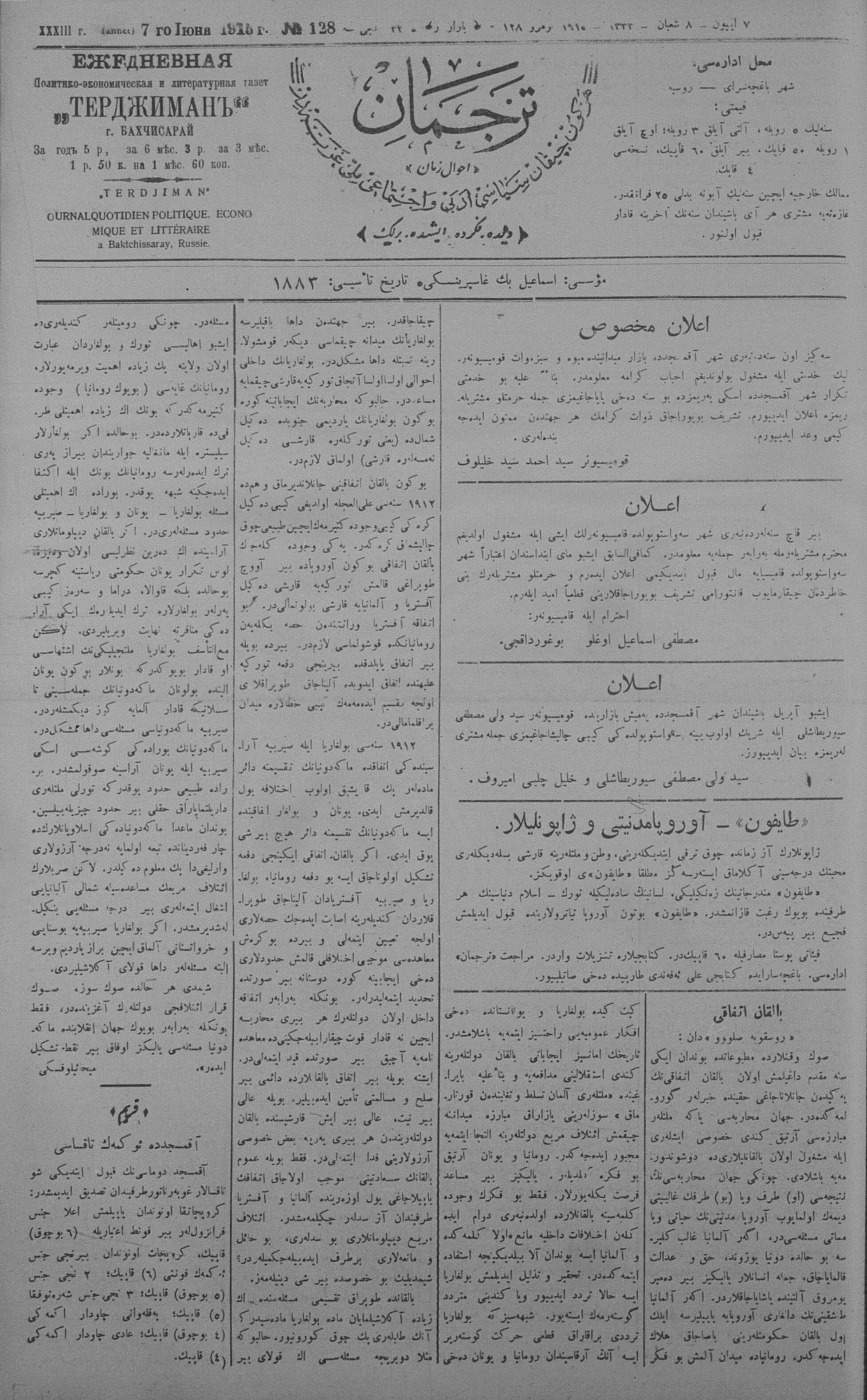 Turkish-Russian newspaper published in Crimea by İsmail Gaspıralı.