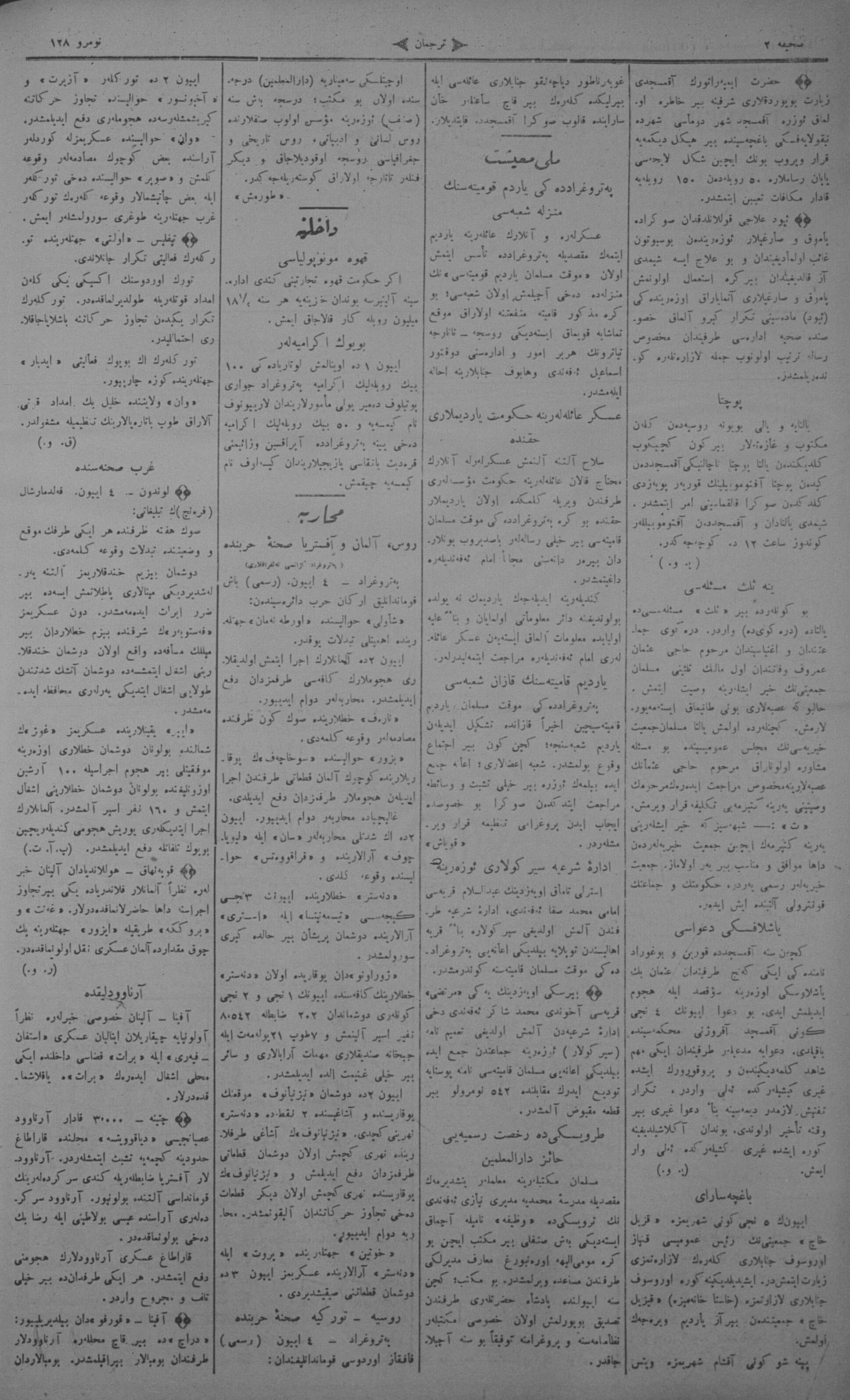 Tercüman, 07 June 1915 Year 33 No 128