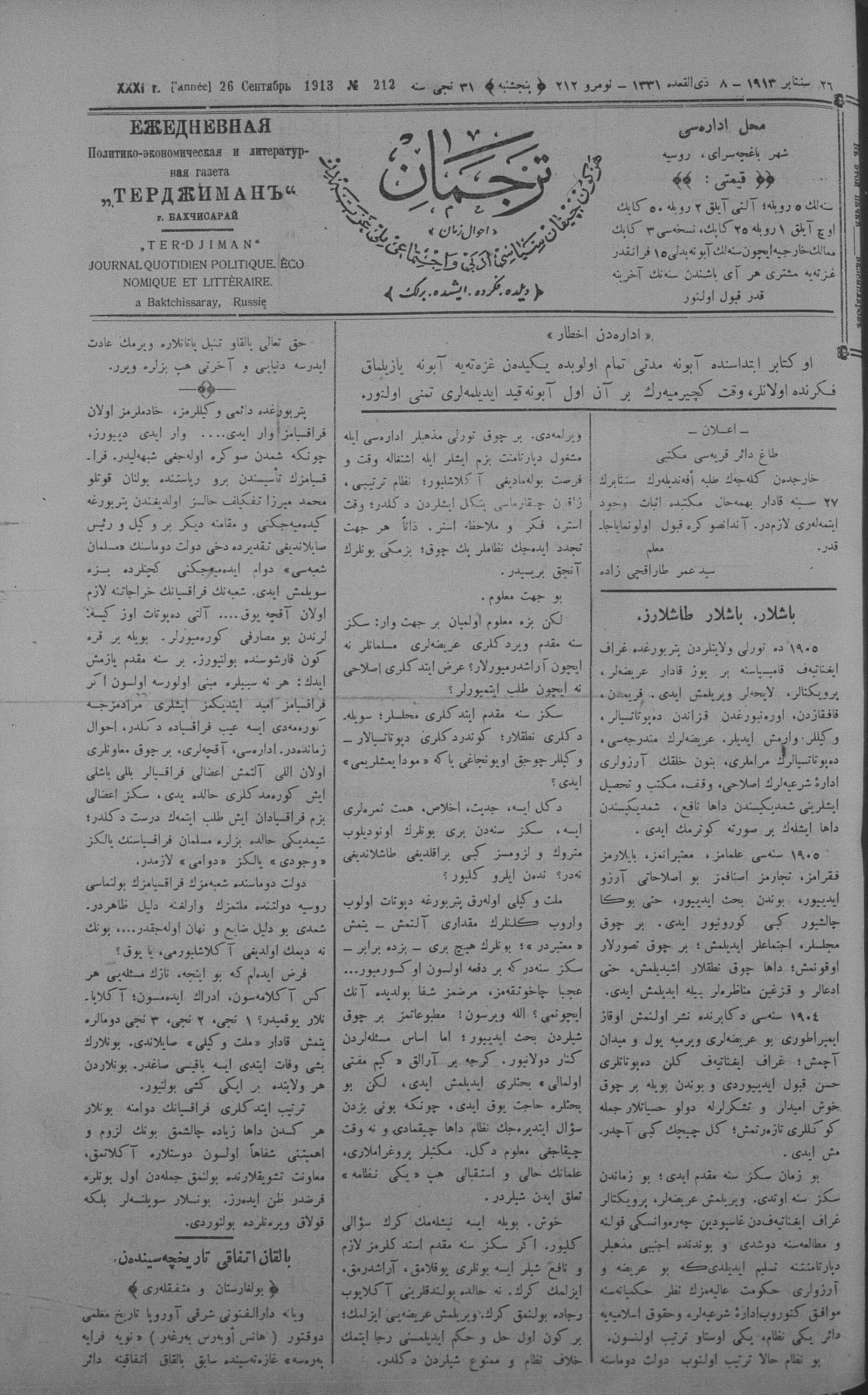 Turkish-Russian newspaper published in Crimea by İsmail Gaspıralı.