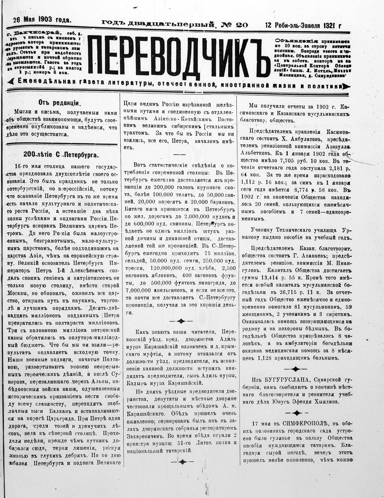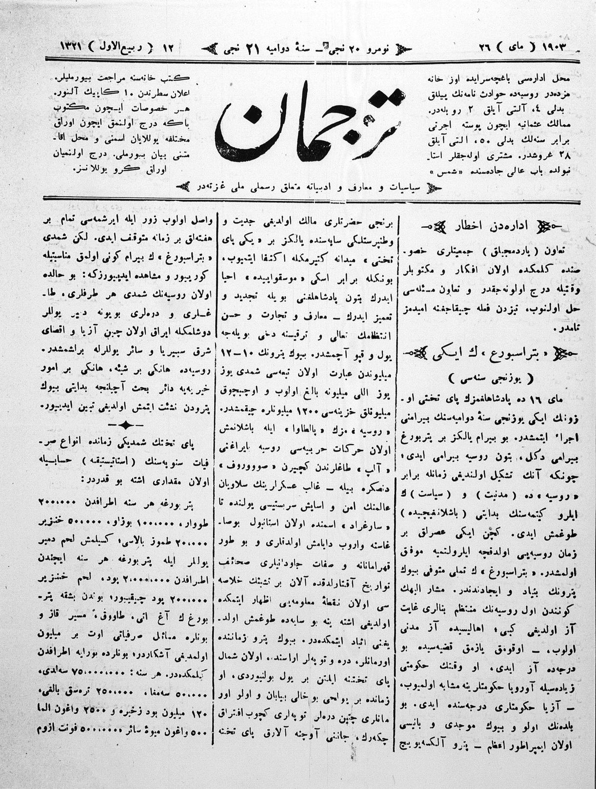 Tercüman, 26 May 1903 Year 21 No 20
