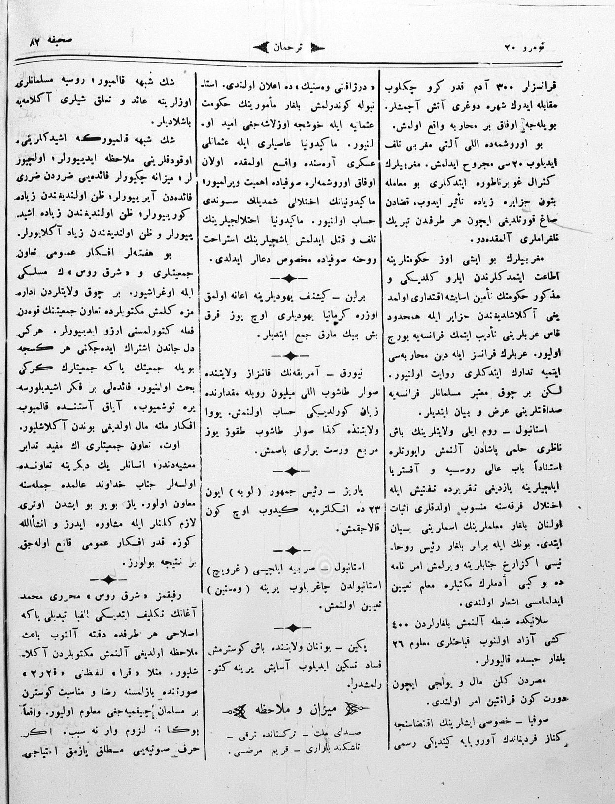 Different spellings of Tercüman: Terdzhiman, Terjuman, Perevodçik and Terjiman.