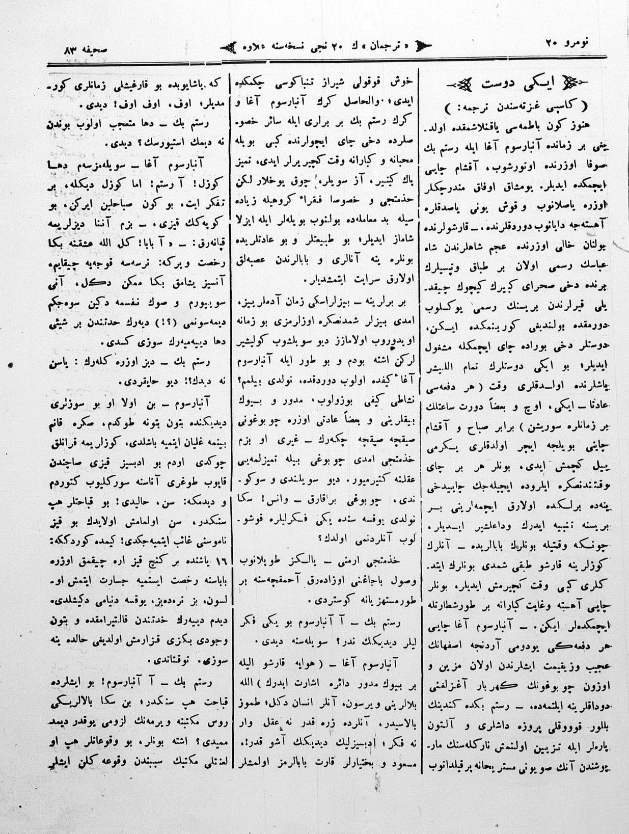 The name of the newspaper changed to Tercüman-ı Ahval-i Zaman in 1905. In 1909, it started to be published under its first name, Tercüman.