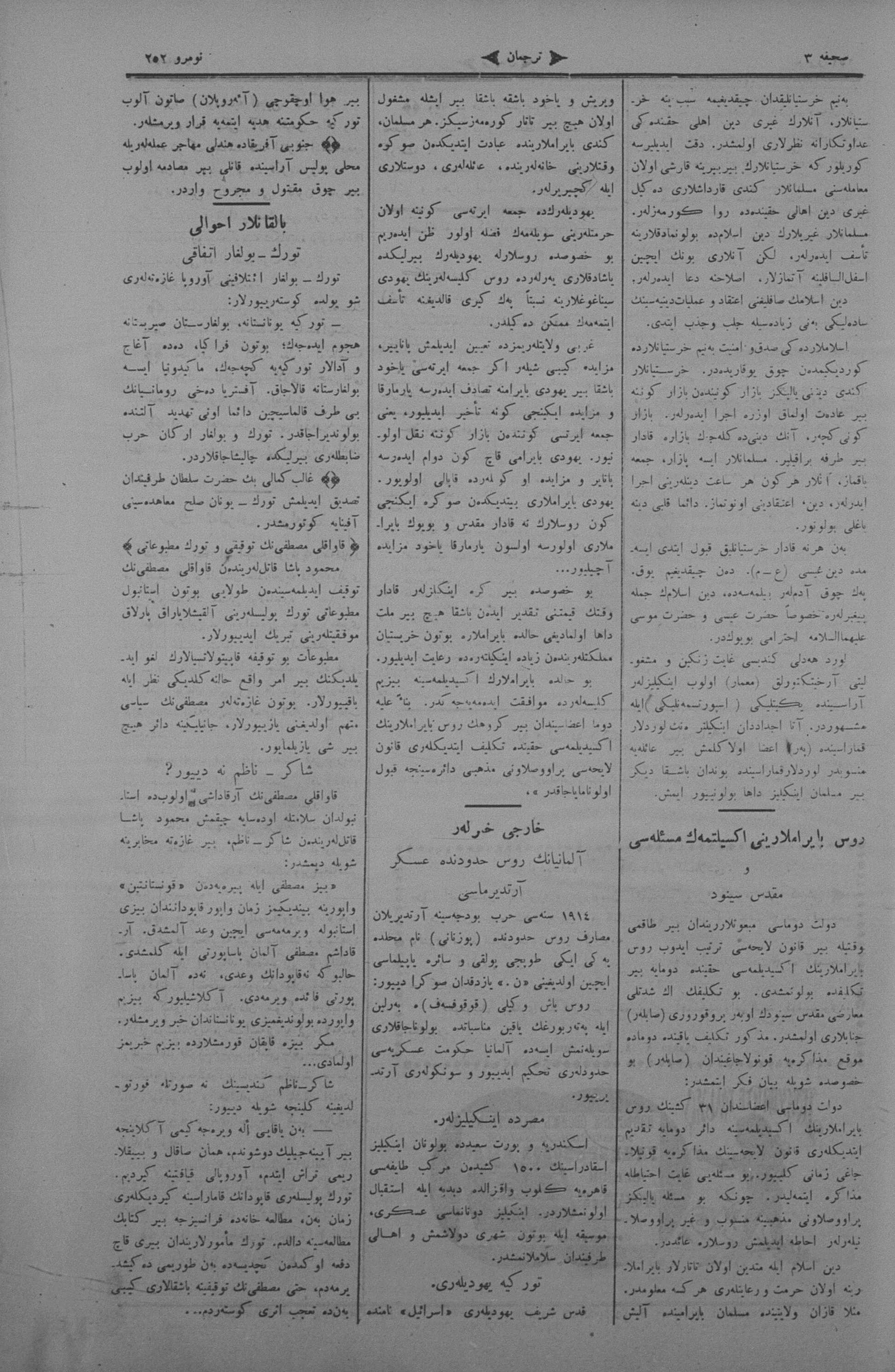 The name of the newspaper changed to Tercüman-ı Ahval-i Zaman in 1905. In 1909, it started to be published under its first name, Tercüman.