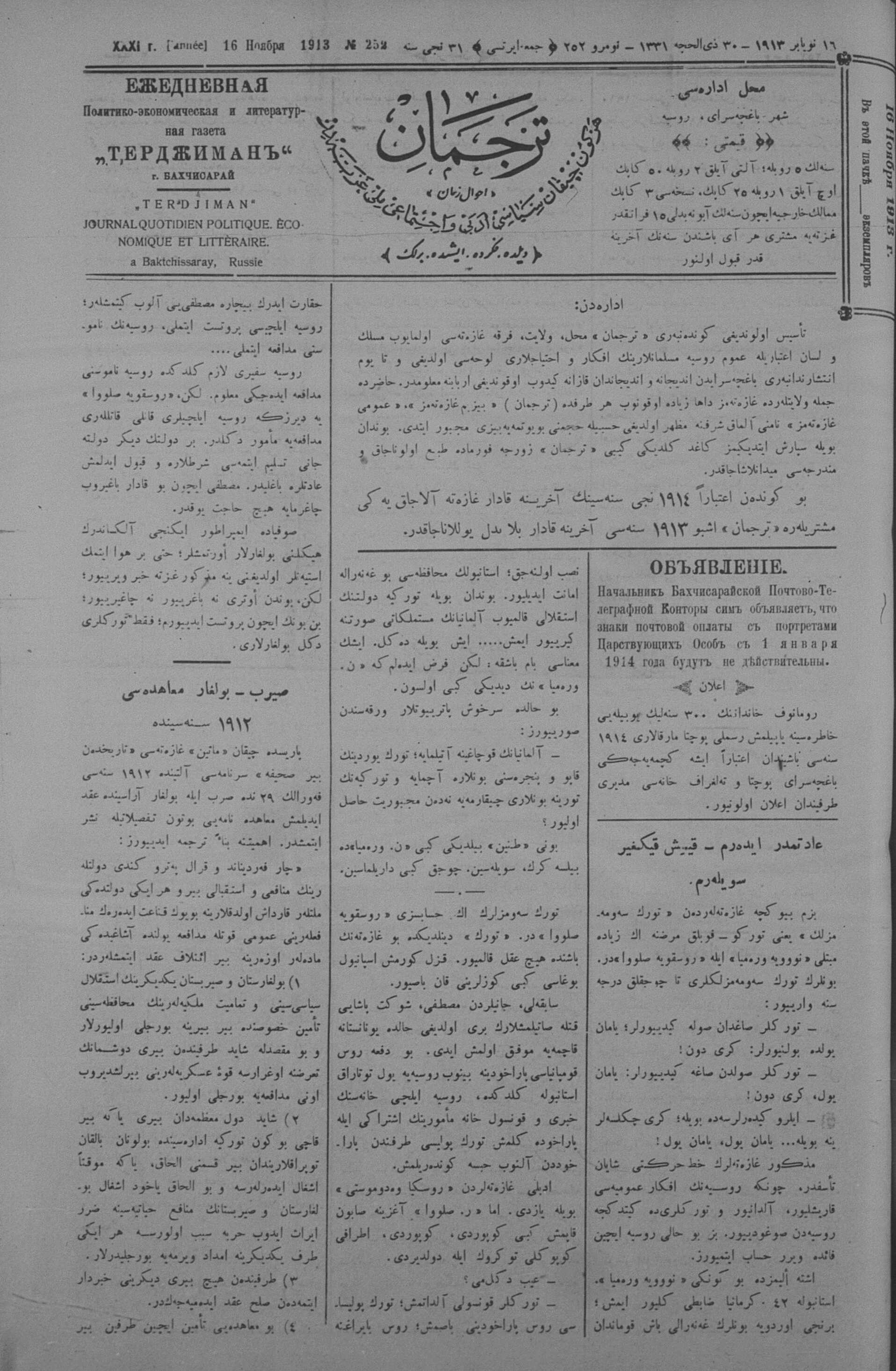 Turkish-Russian newspaper published in Crimea by İsmail Gaspıralı.