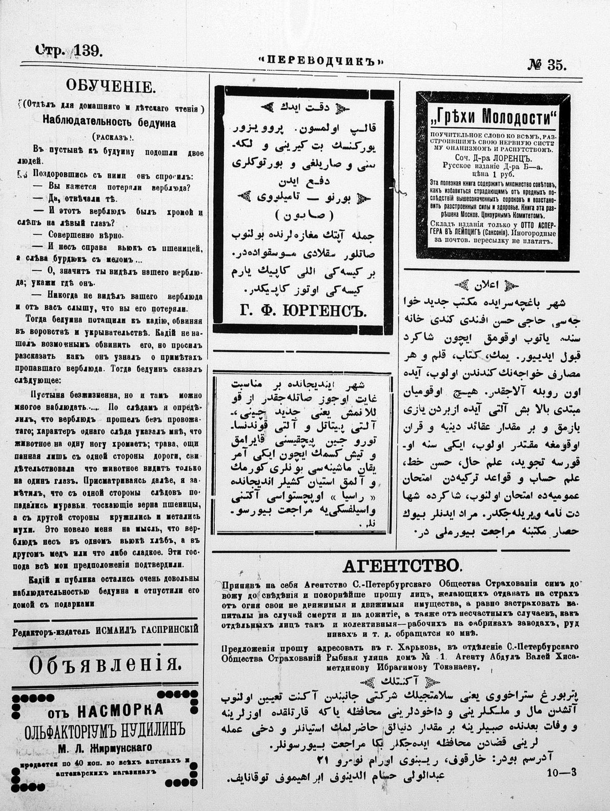 Different spellings of Tercüman: Terdzhiman, Terjuman, Perevodçik and Terjiman.