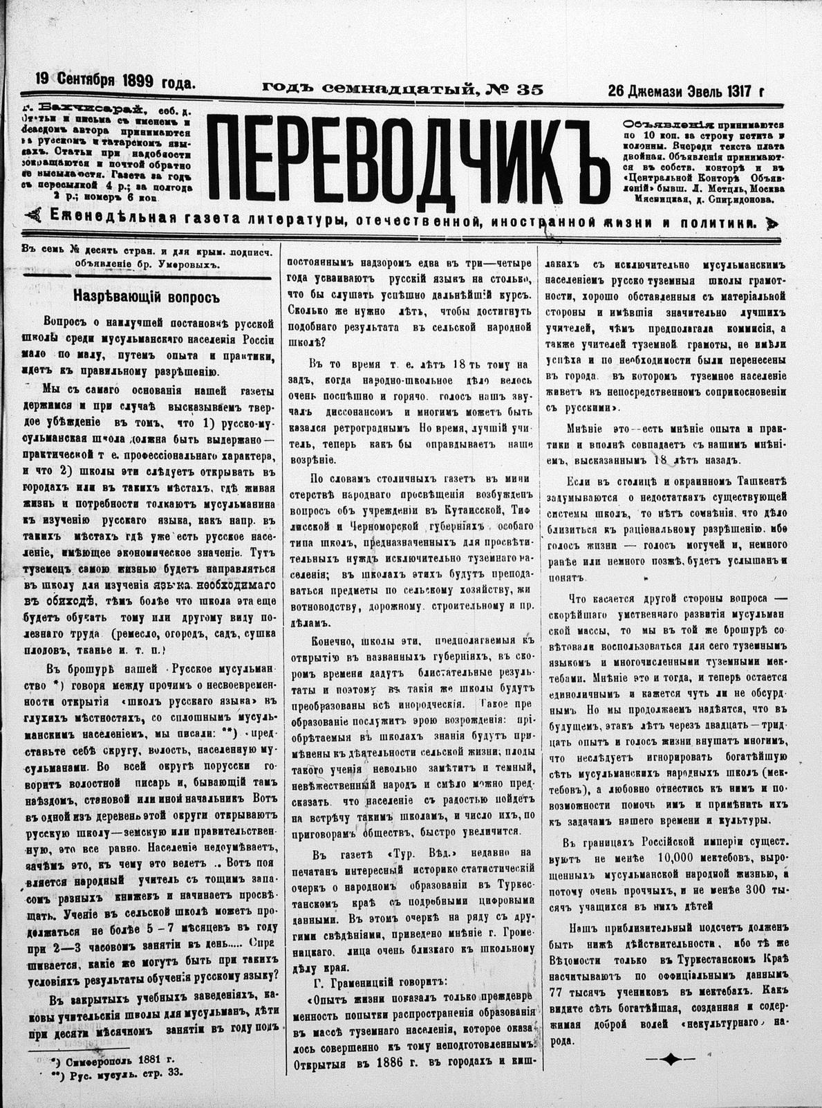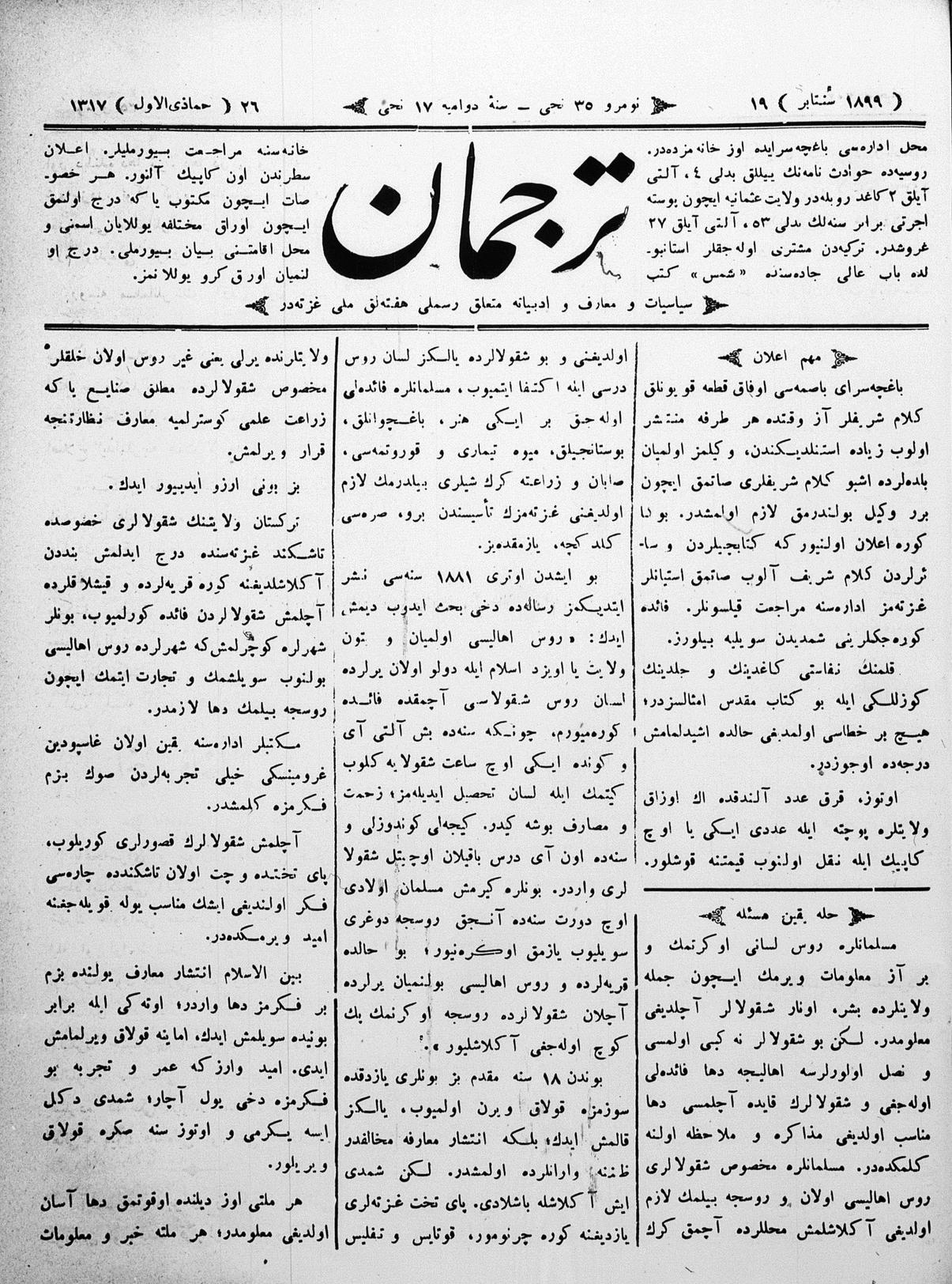 Turkish-Russian newspaper published in Crimea by İsmail Gaspıralı.