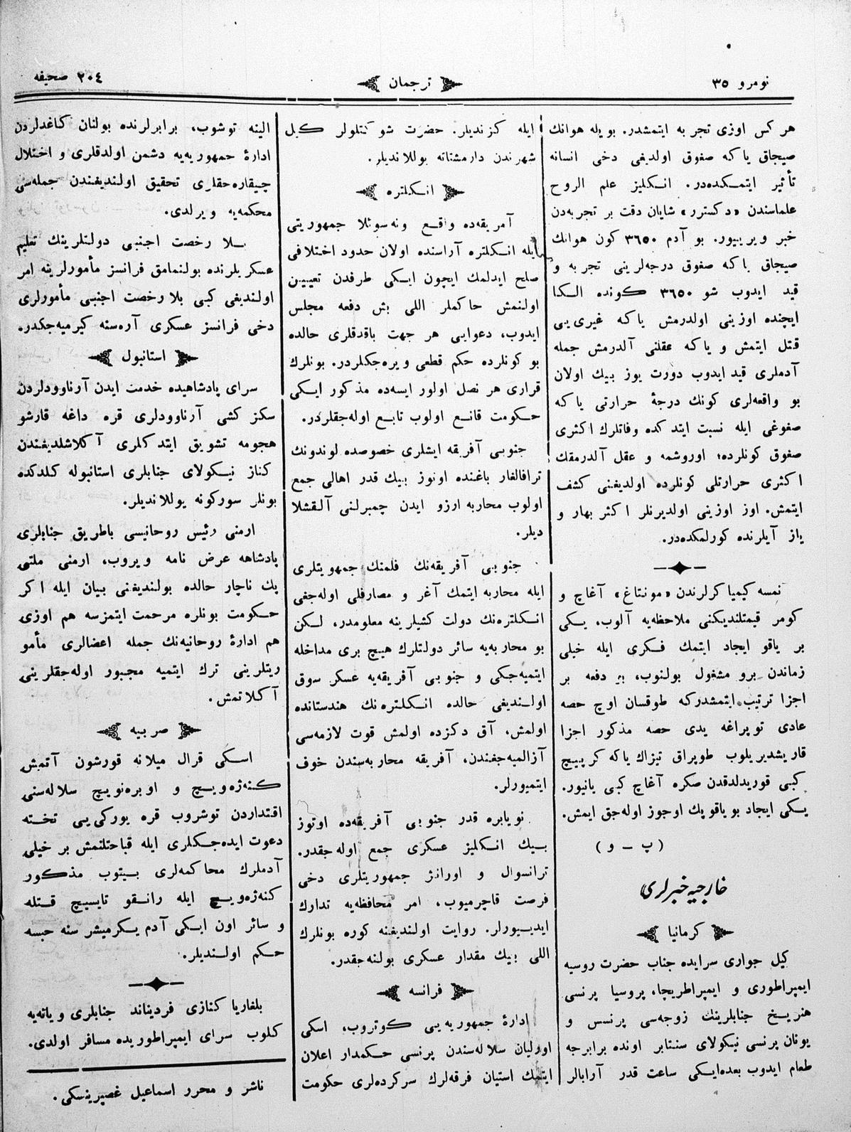 The name of the newspaper changed to Tercüman-ı Ahval-i Zaman in 1905. In 1909, it started to be published under its first name, Tercüman.