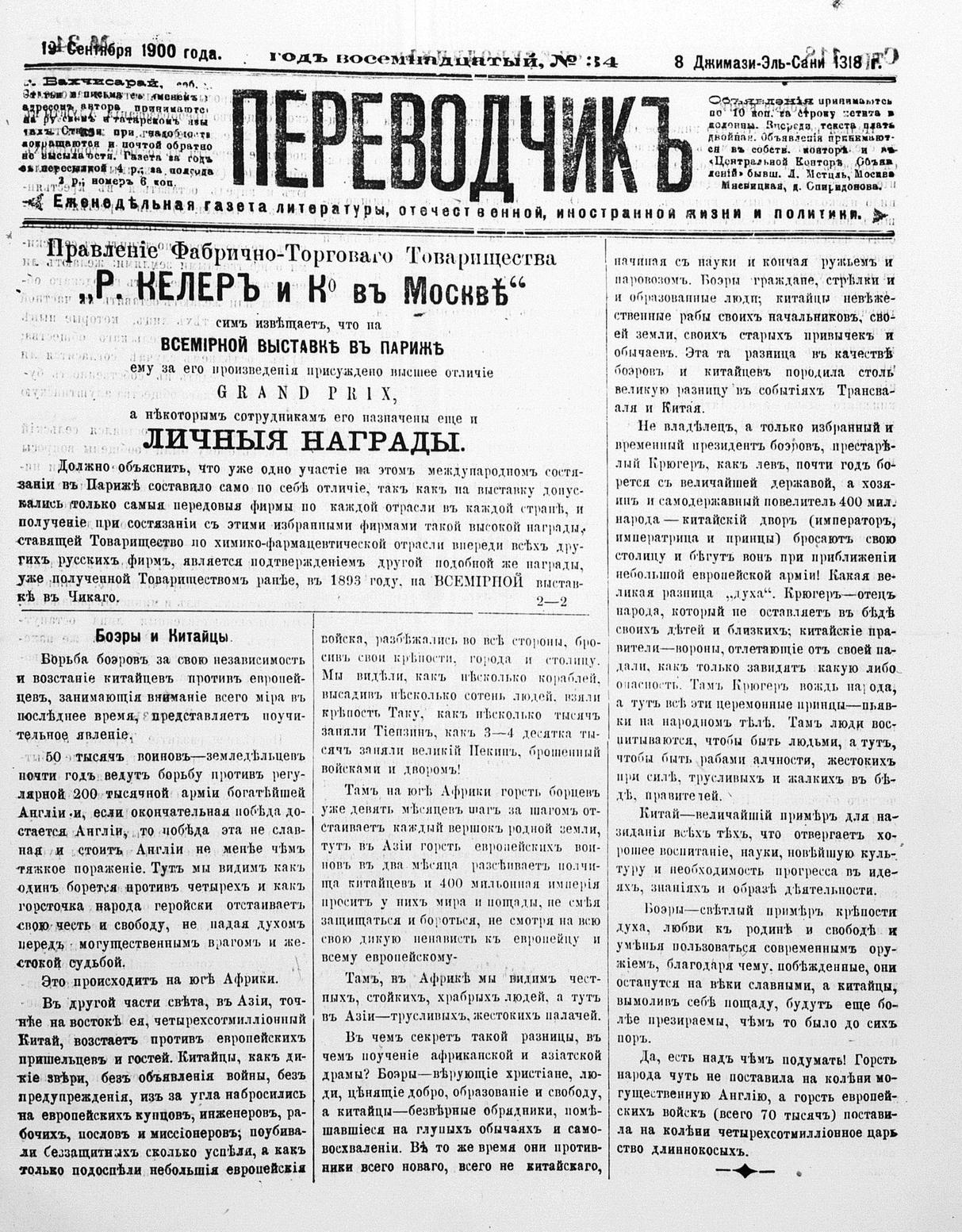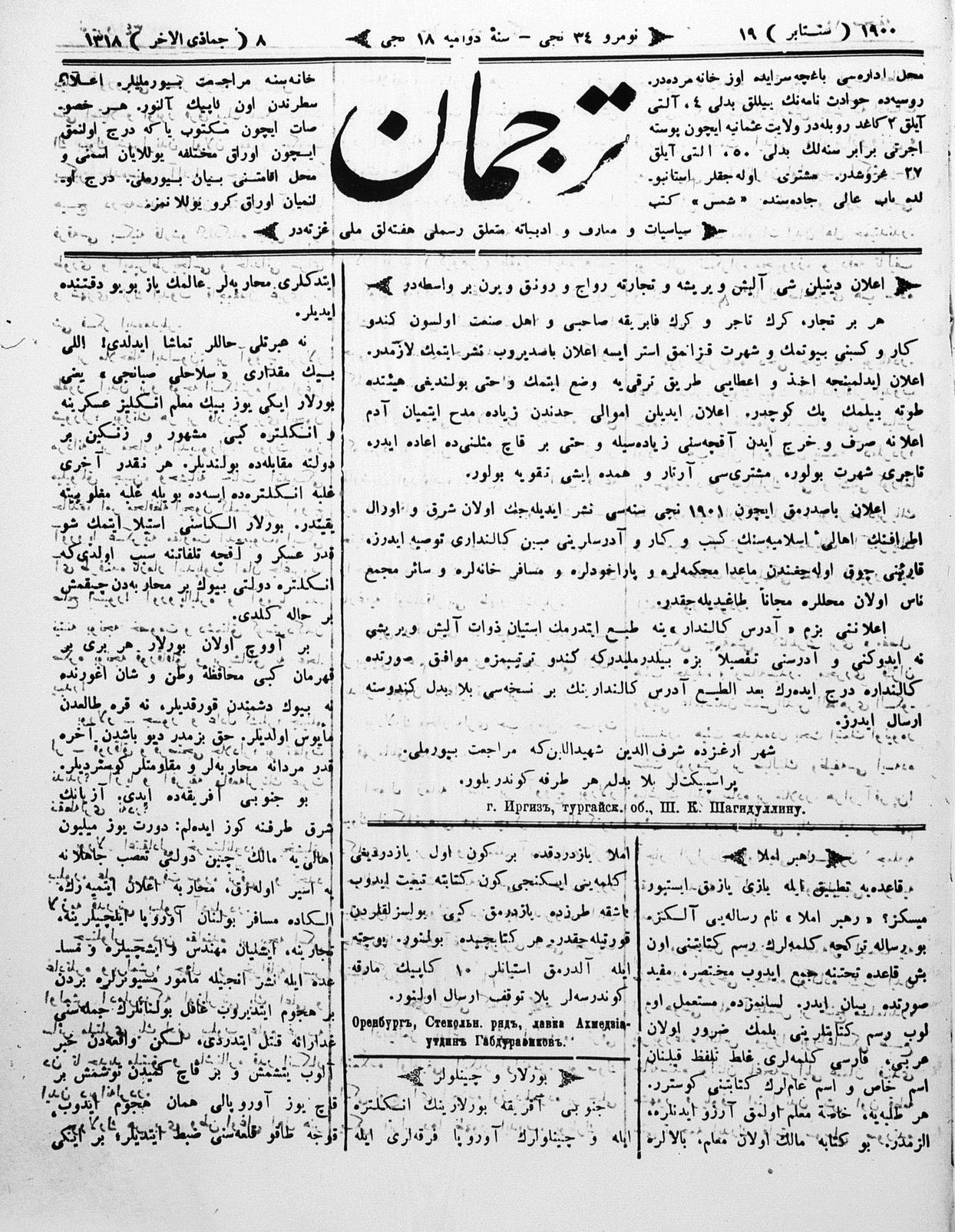 Tercüman, 19 September 1900 Year 18 No 34